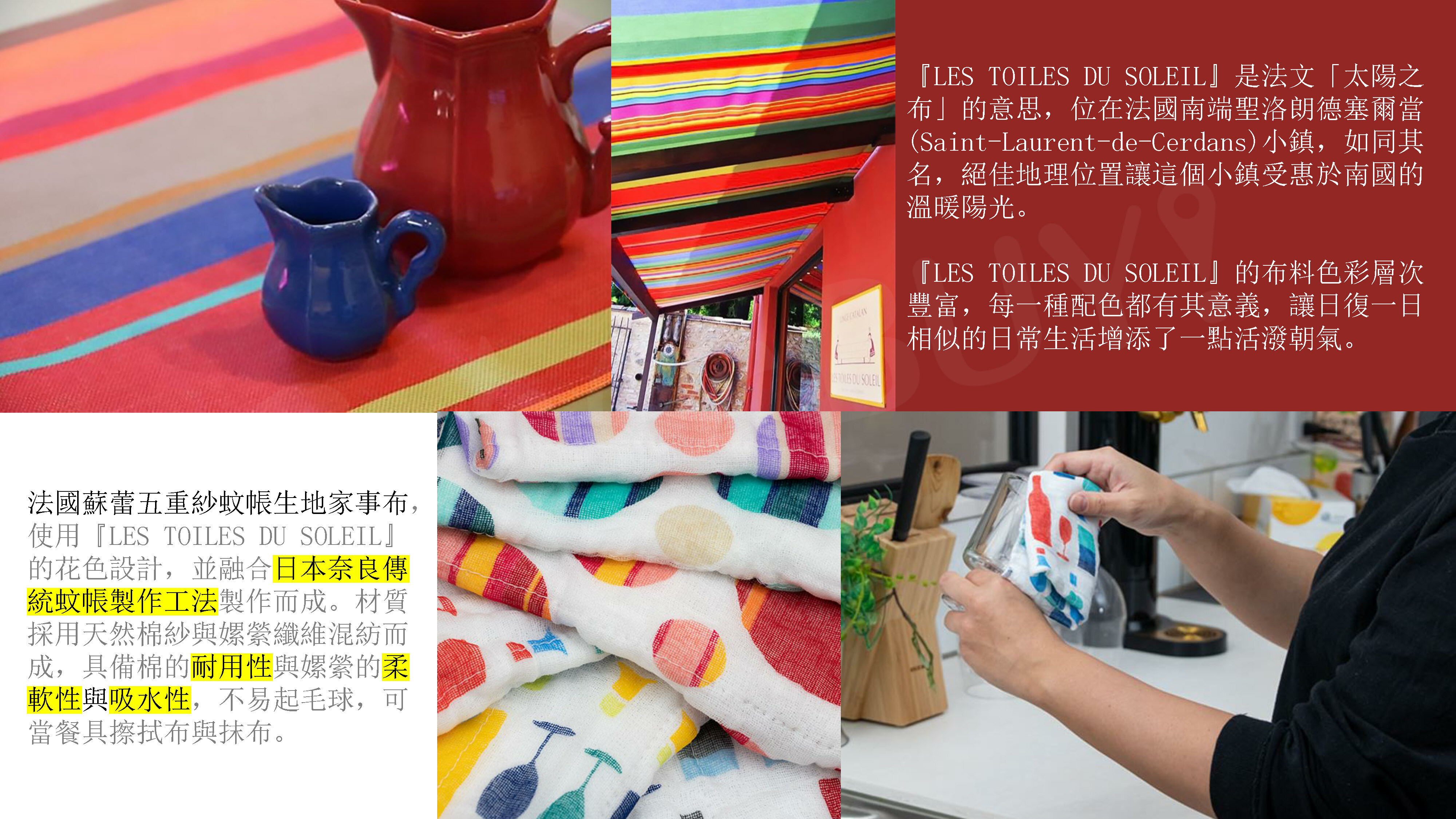 ●LES TOILES DU SOLEIL是來自法國的古老品牌,法文意為「太陽之布」