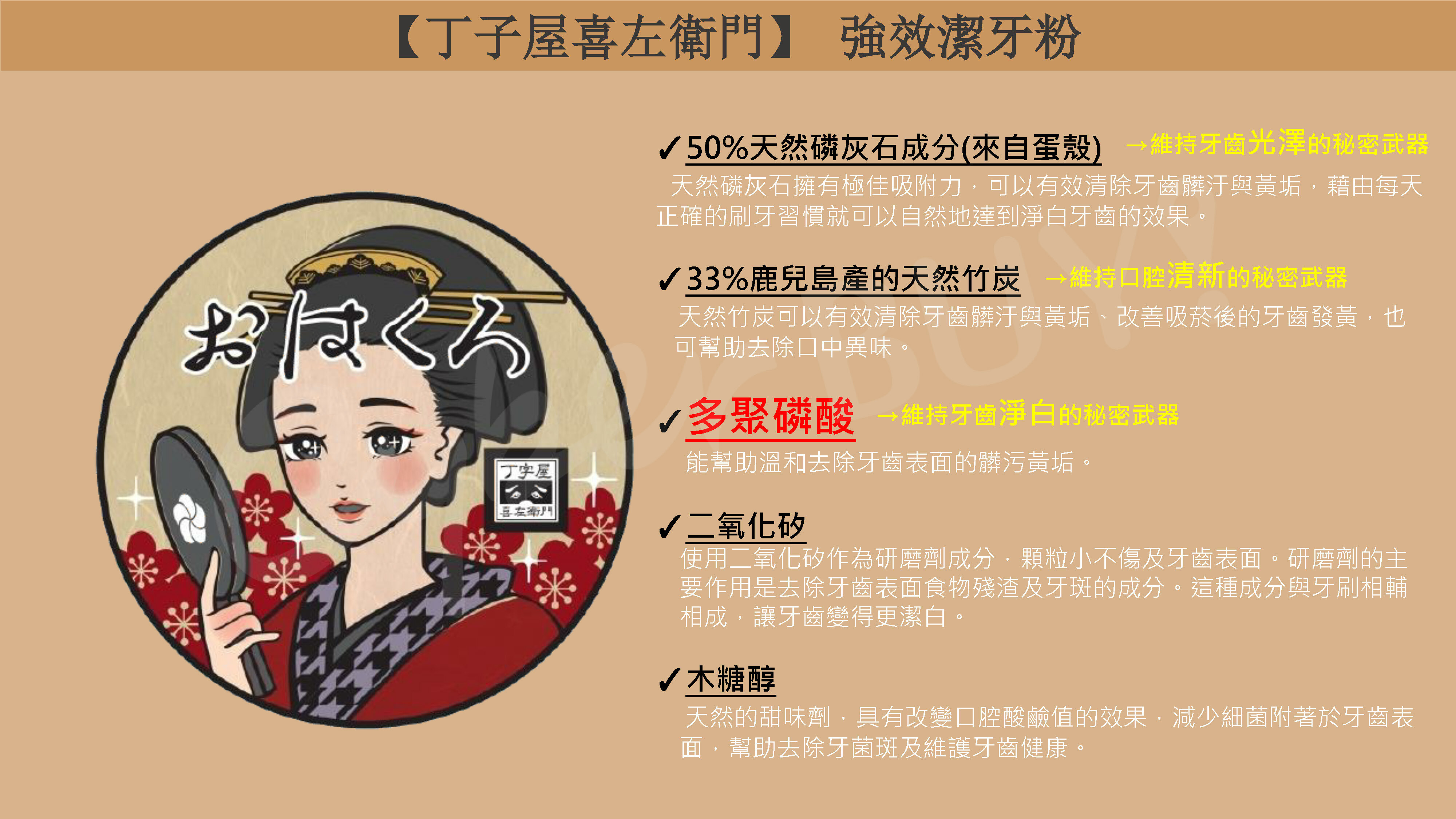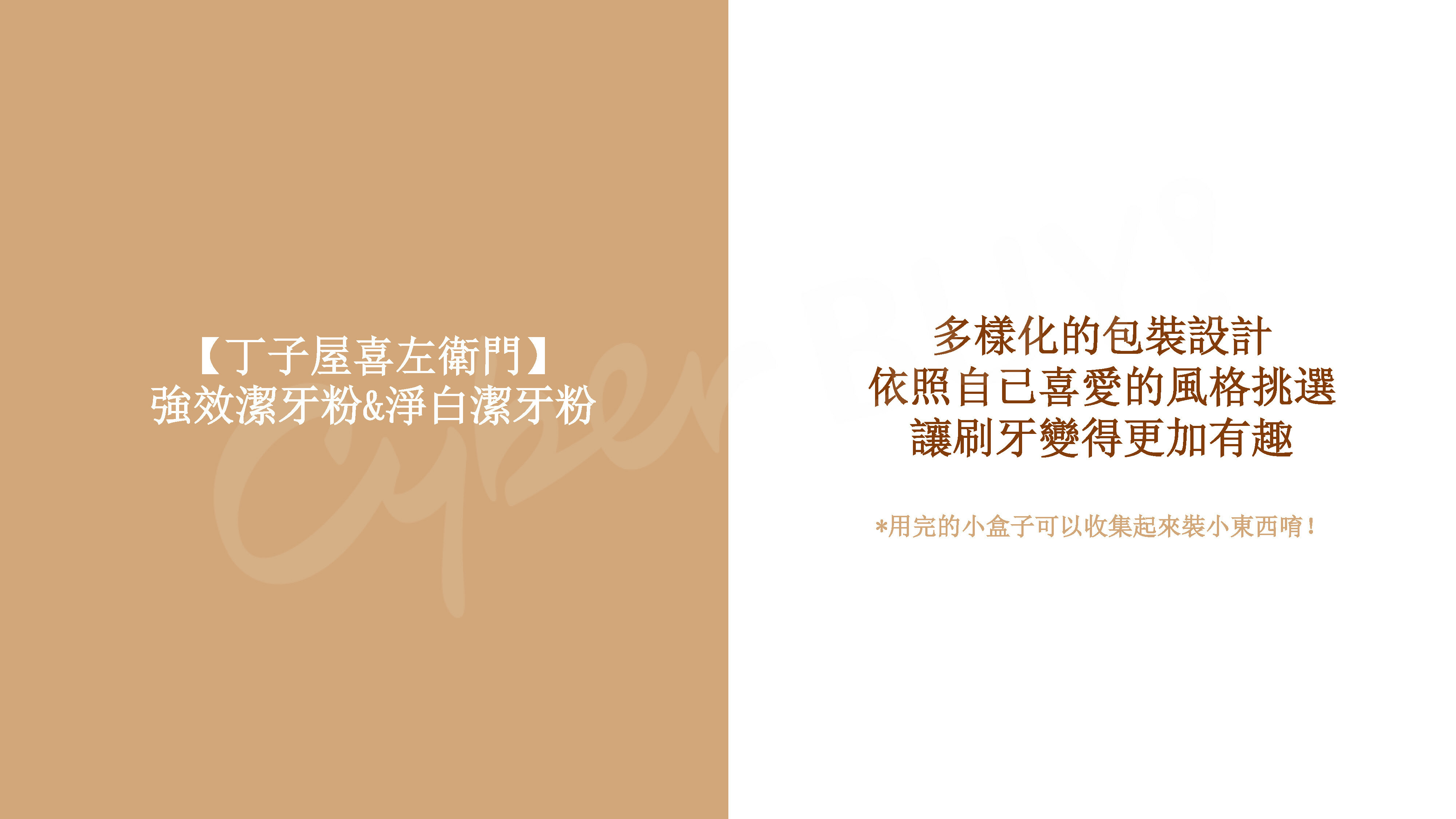●新發售的「丁子屋喜左衛門」系列在包裝及配方都改版過,多樣化包裝讓刷牙更加有趣!