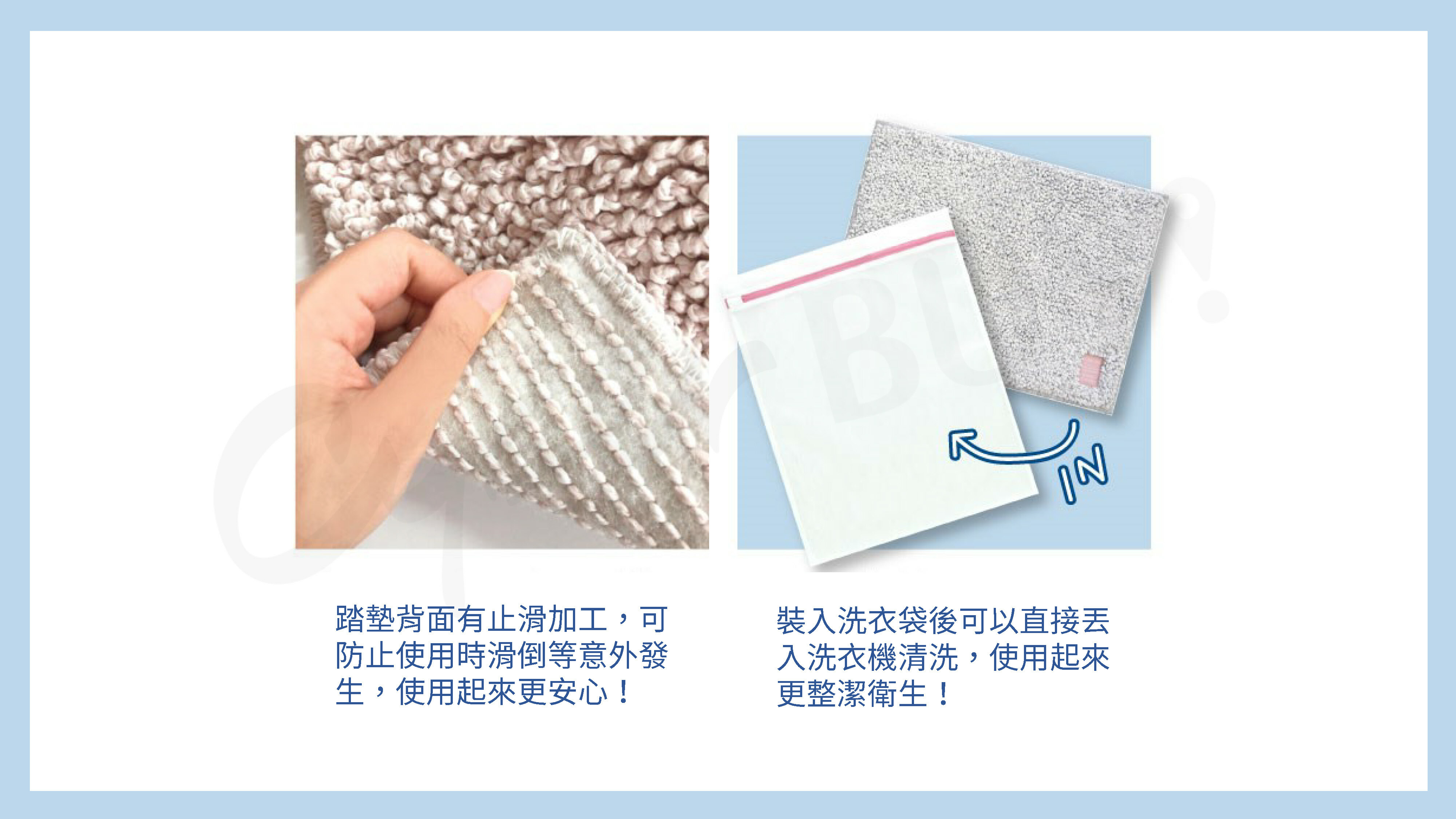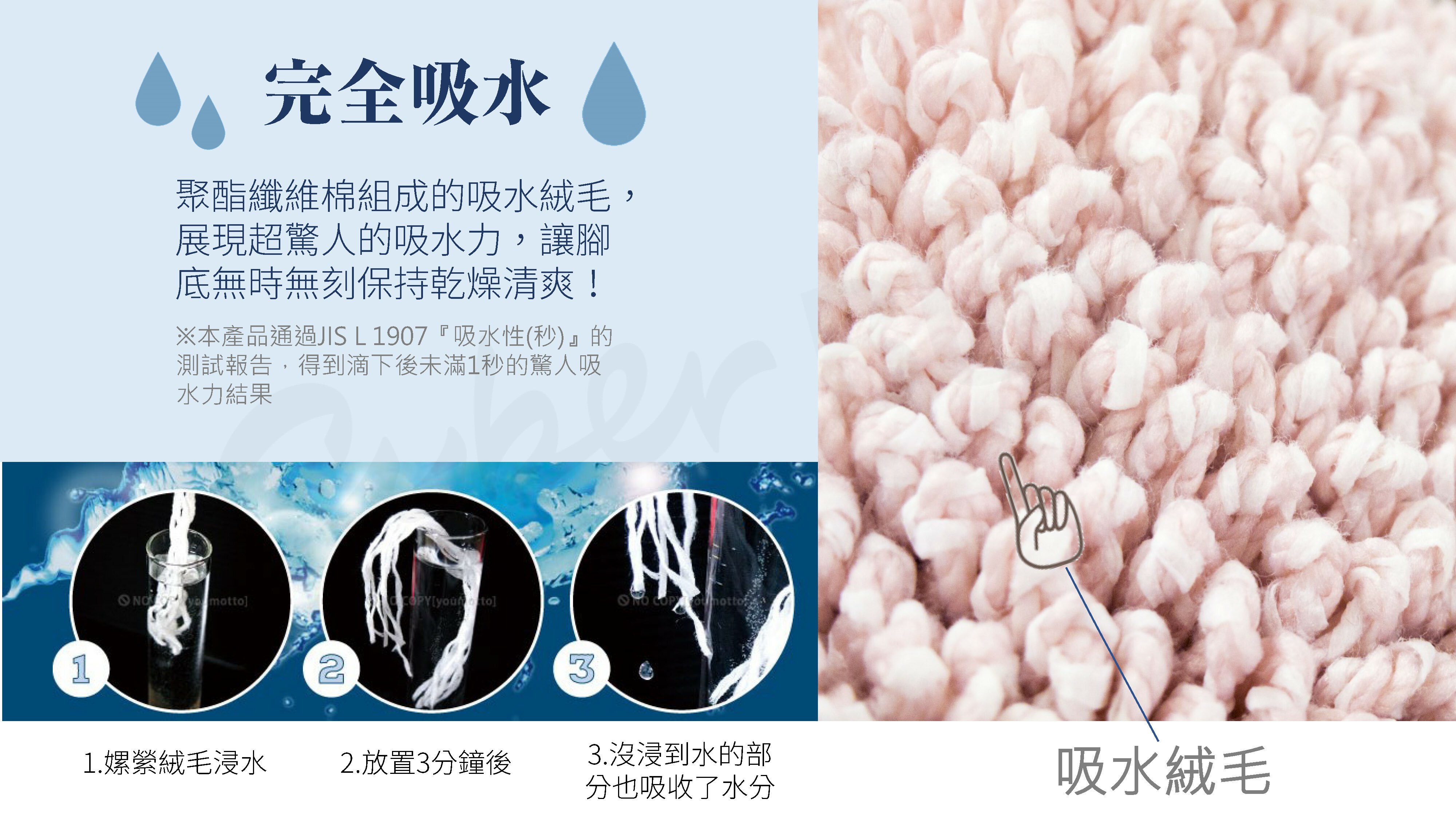 ●踏墊上輕巧的吸水絨毛,柔軟親膚,豐厚舒適