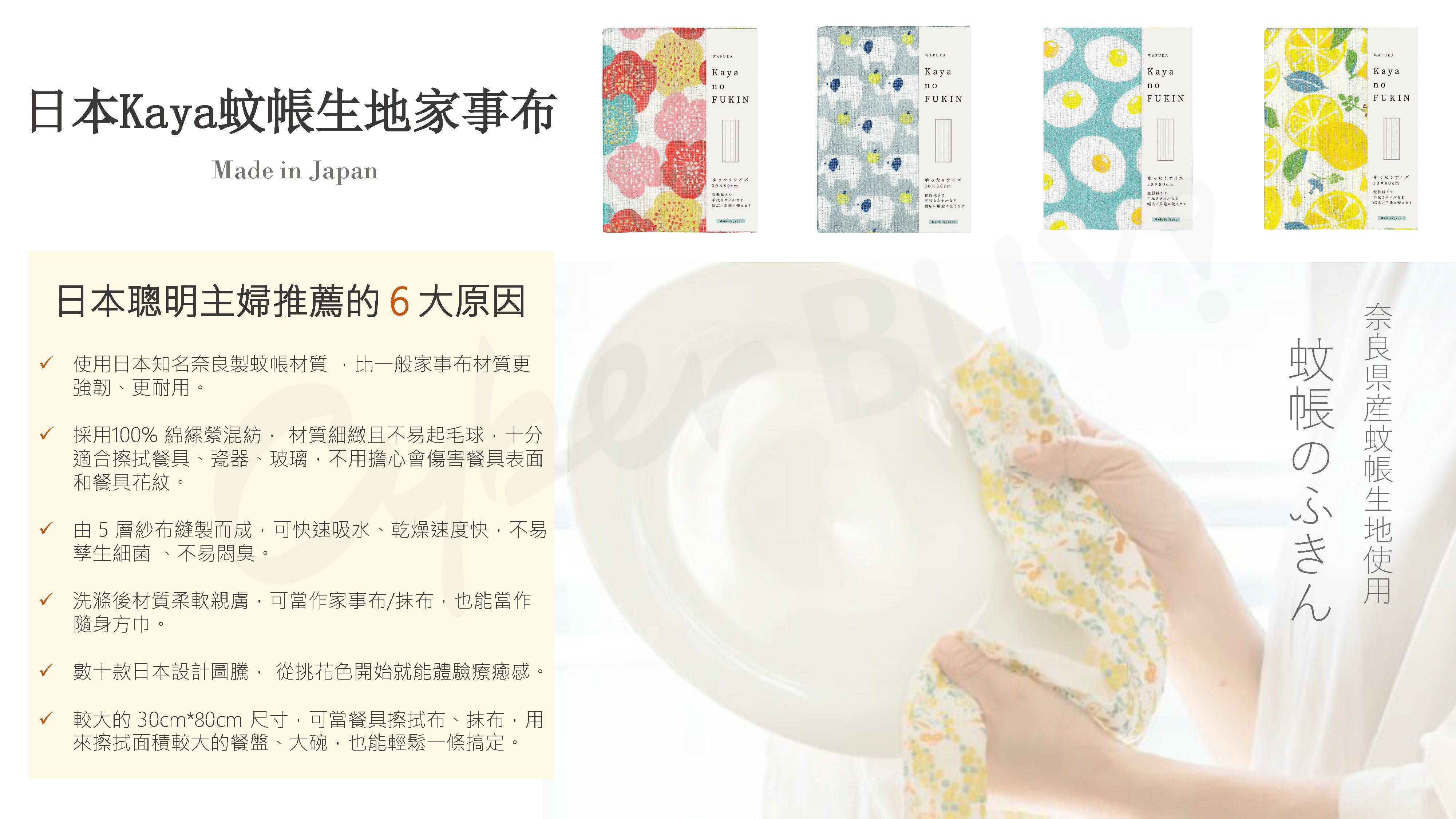 ●日本製Kaya蚊帳生地家事布,推出80*30cm及40*30cm兩種尺寸