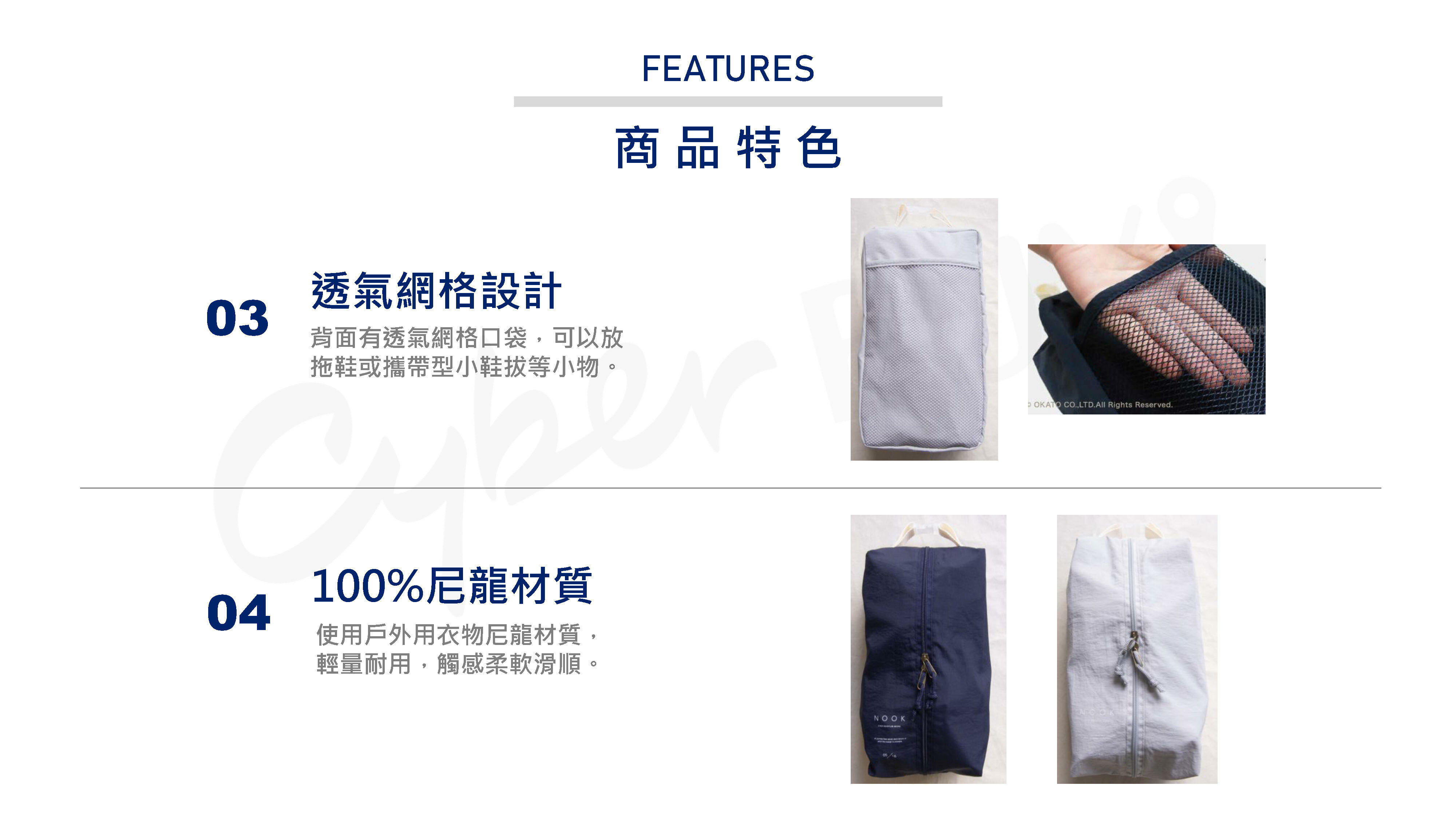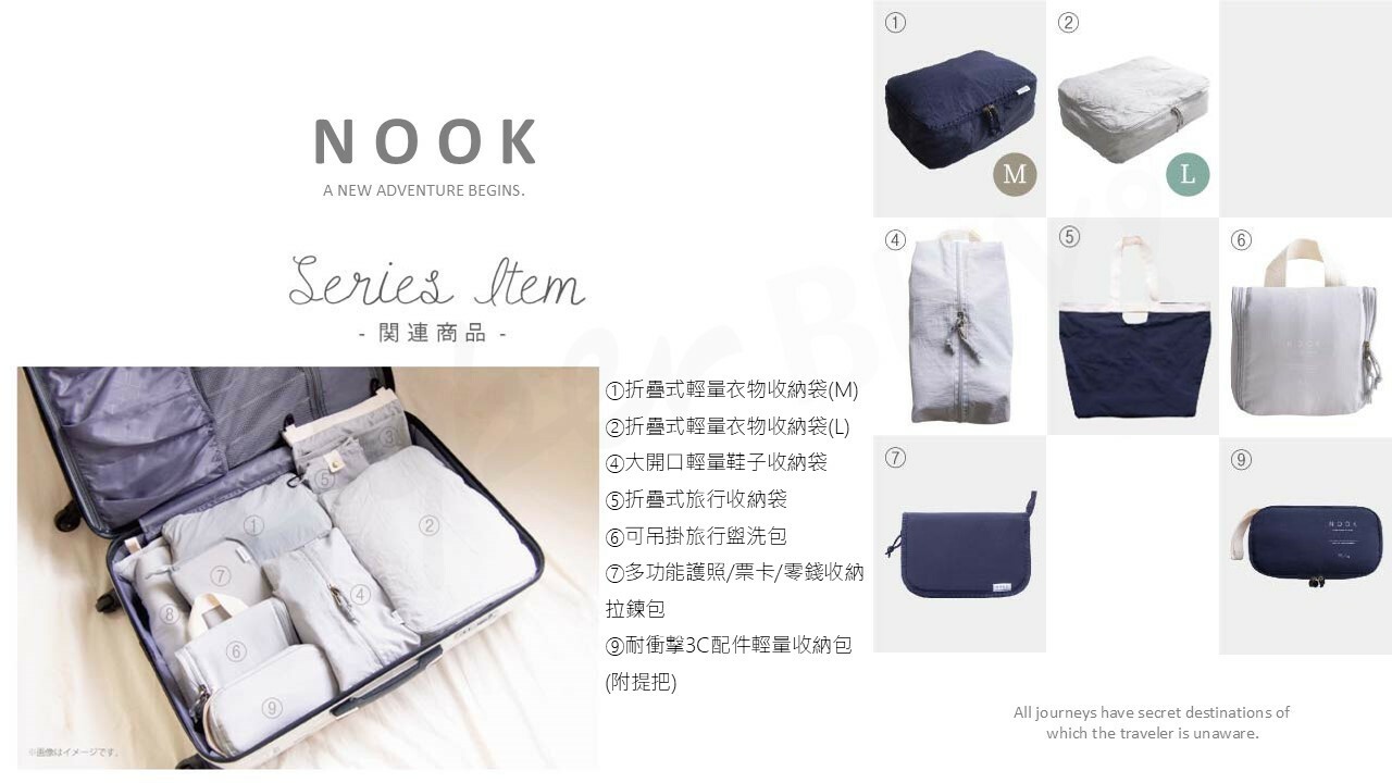 ●NOOK旅行收納系列以尼龍為主要材質,輕量耐用易清潔