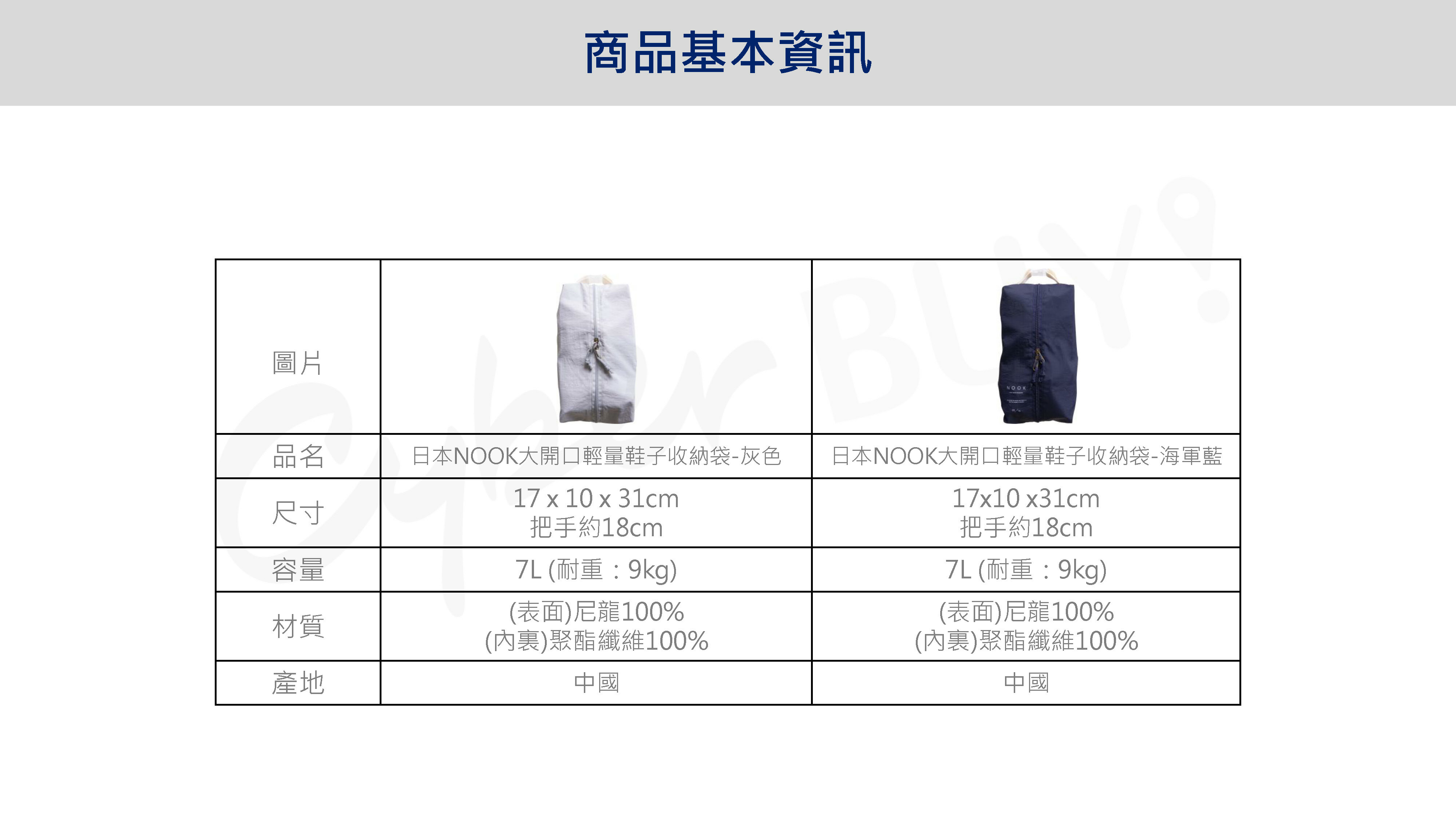 日本NOOK大開口輕量鞋子收納袋-灰色