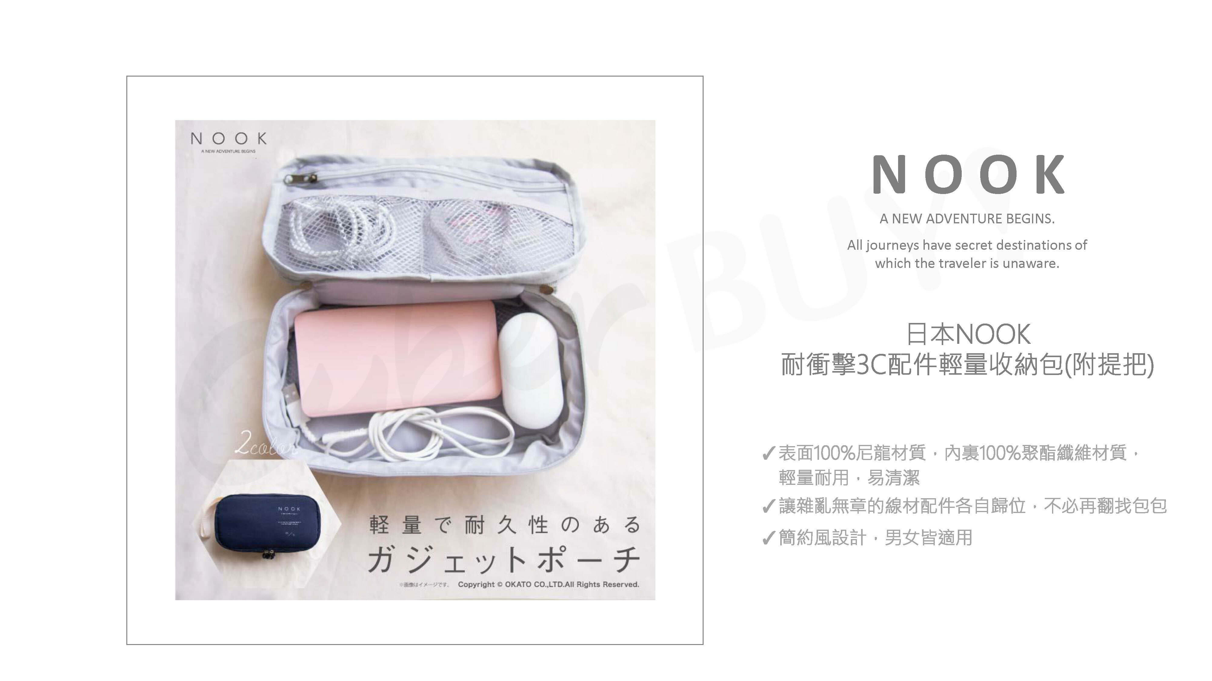●NOOK旅行收納系列以尼龍為主要材質,輕量耐用易清潔