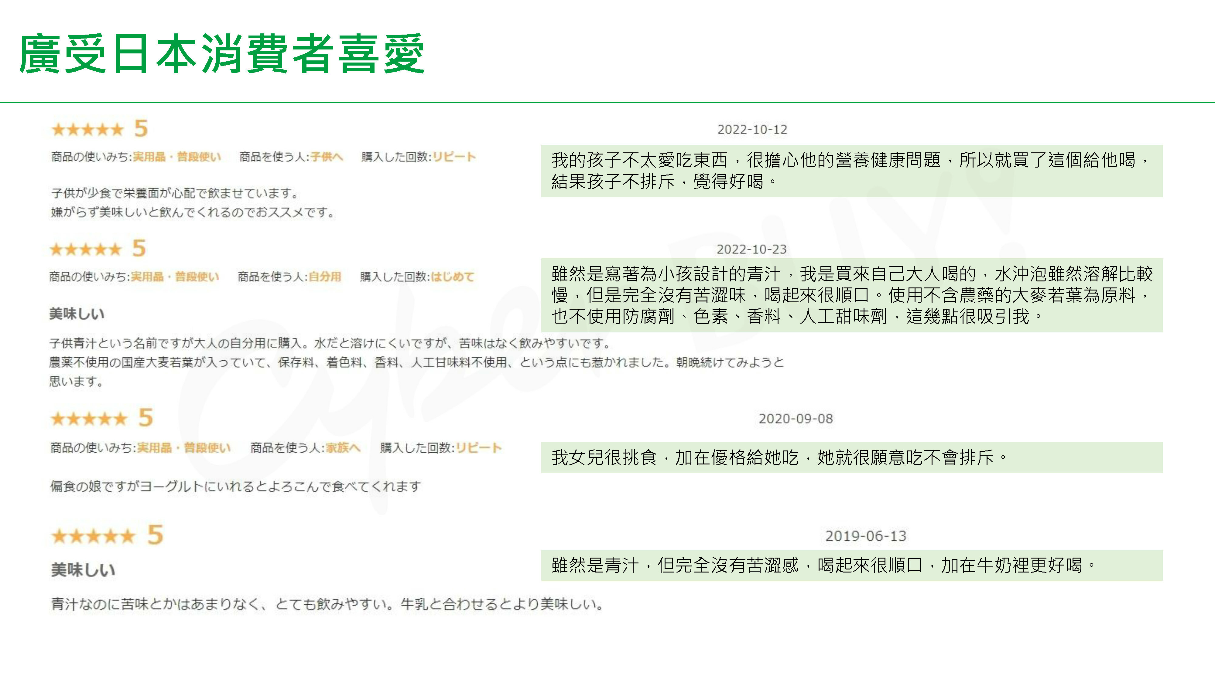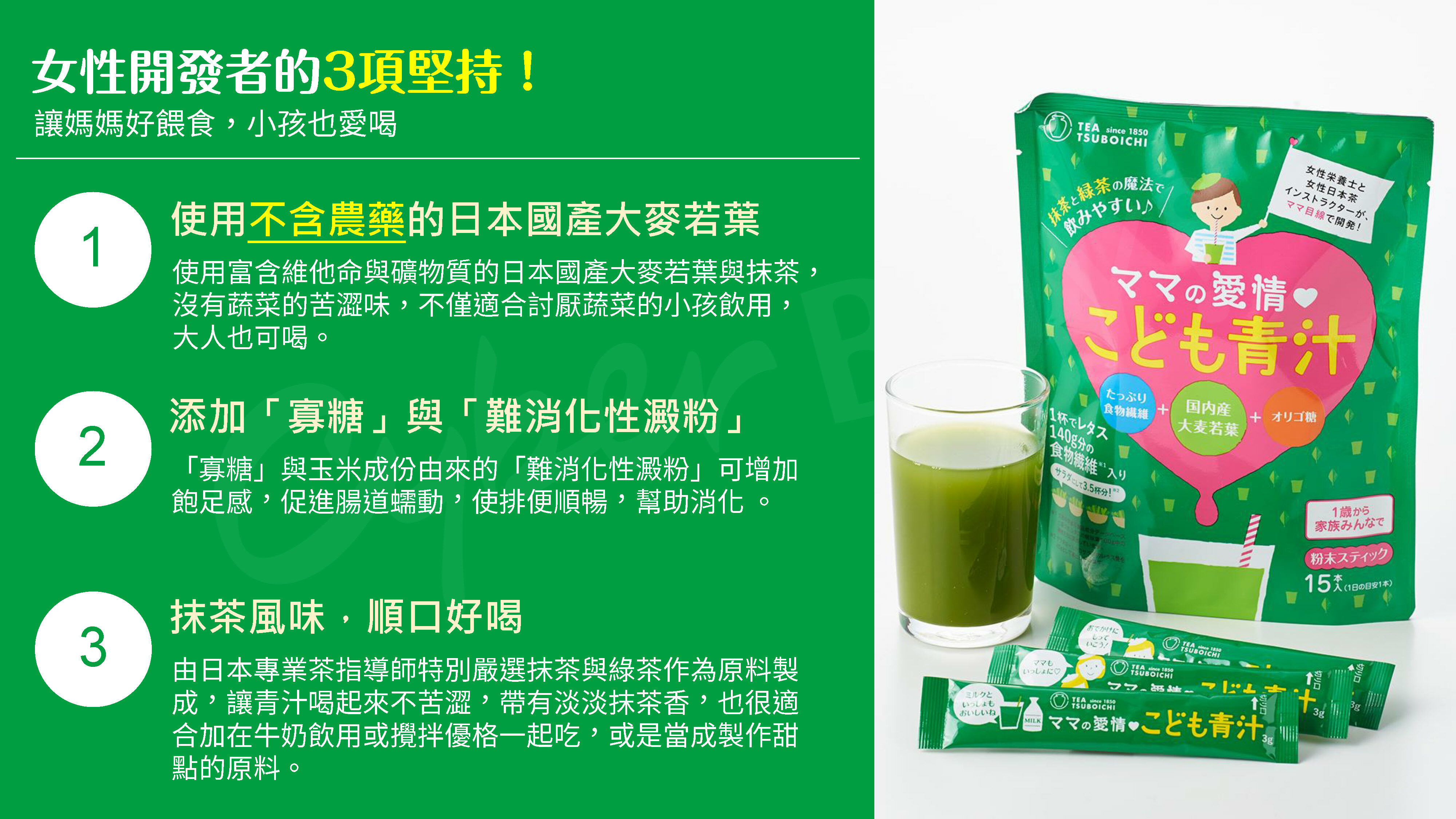 ●採用不含農藥的日本產大麥若葉,添加寡糖與豐富膳食纖維