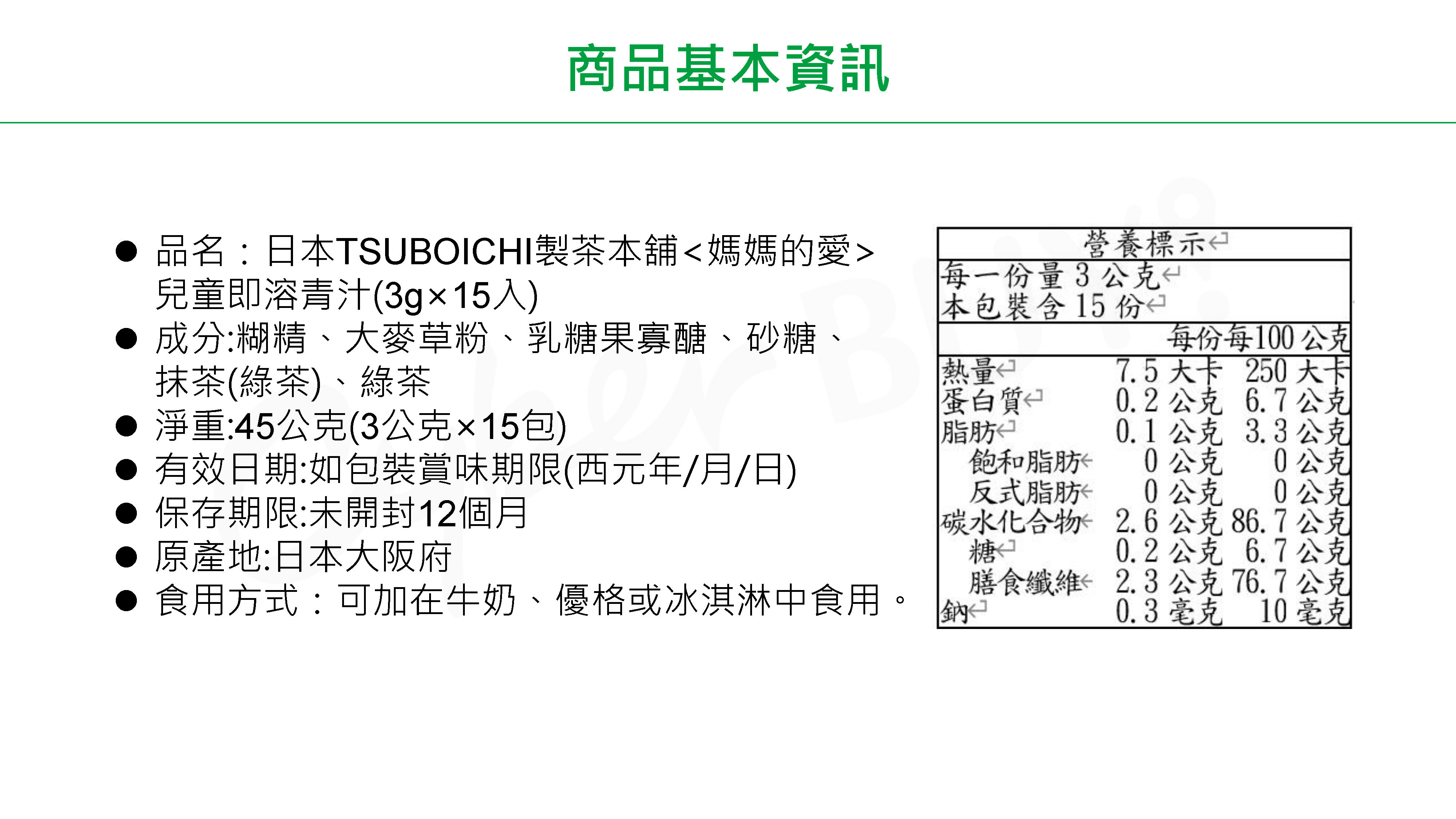 ●由TSUBOICHI且同時身為媽媽的女性專業茶指導師及女性營養師共同開發
