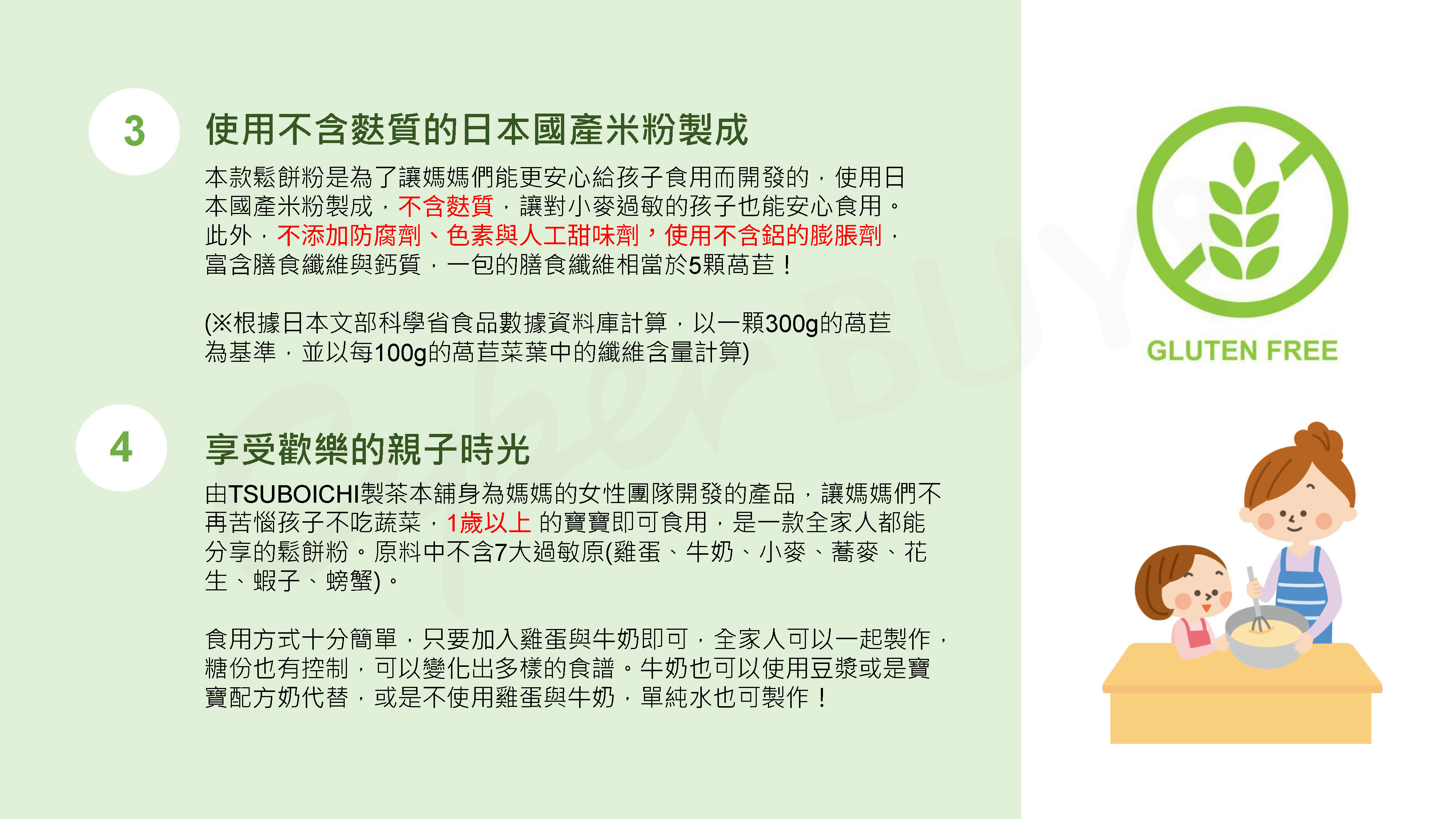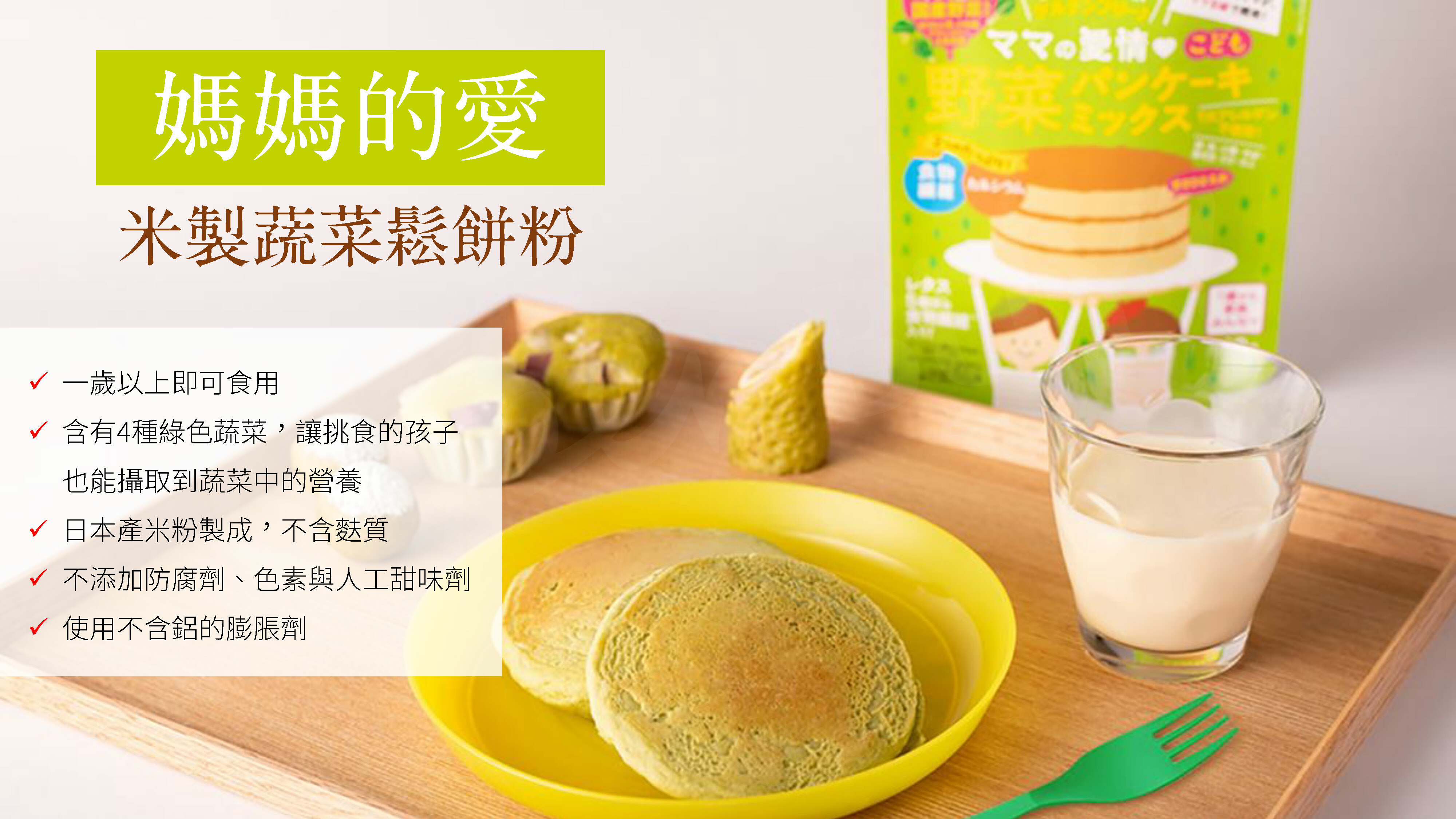 ●一歲以上全家人可一起享用的鬆餅粉,日本產米粉製成,不含麩質