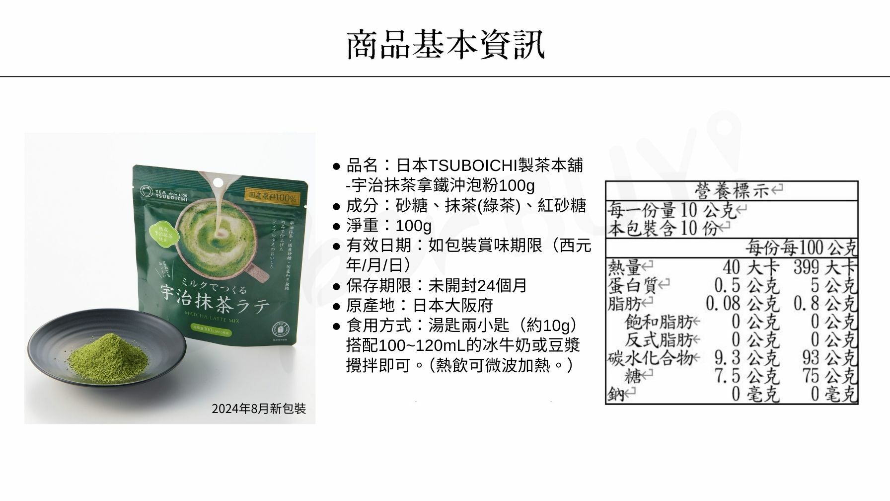 ●不使用人工甜味劑、香料、防腐劑,能完整品嚐正宗抹茶香
