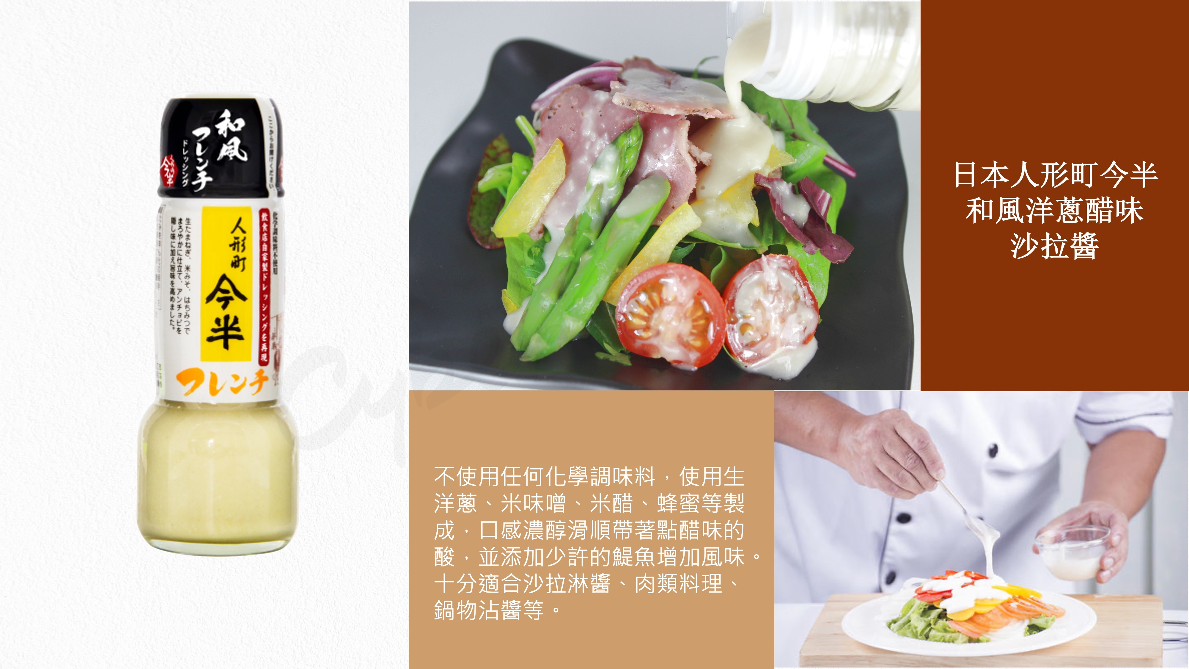 ●可用在沙拉淋醬、肉排料理、火鍋沾醬、拌麵等用途廣泛