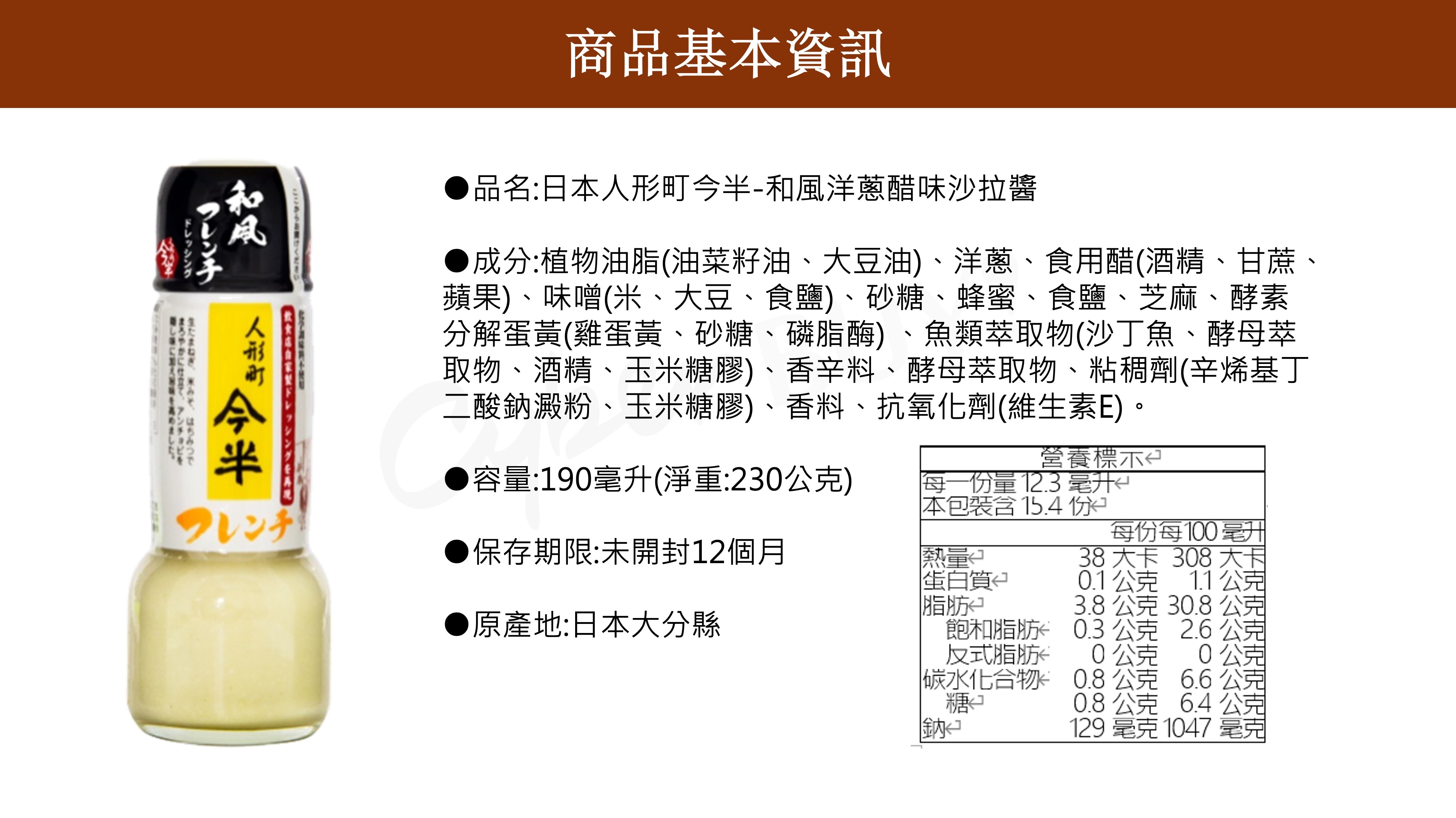日本人形町今半-和風洋蔥醋味沙拉醬190ml