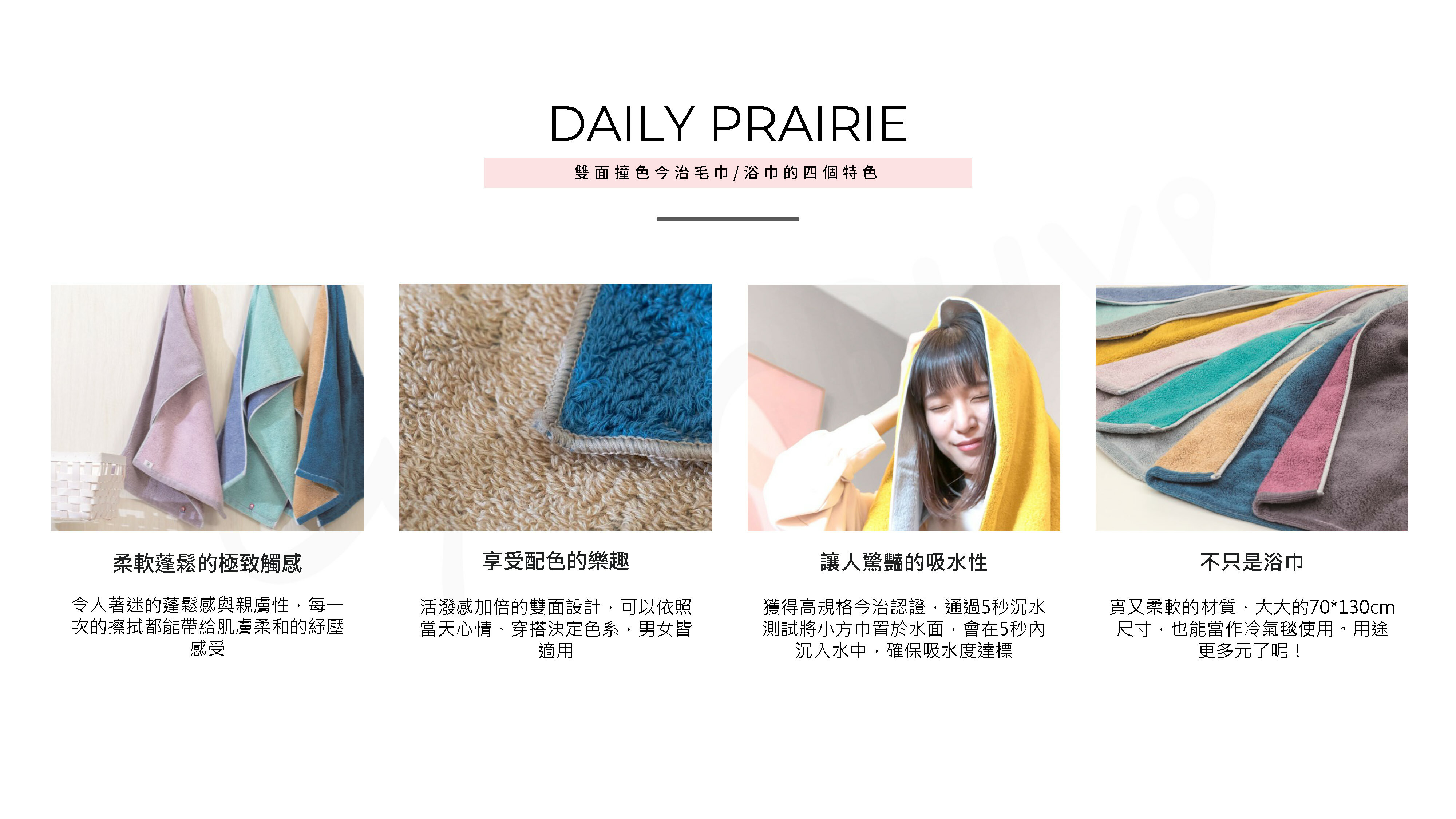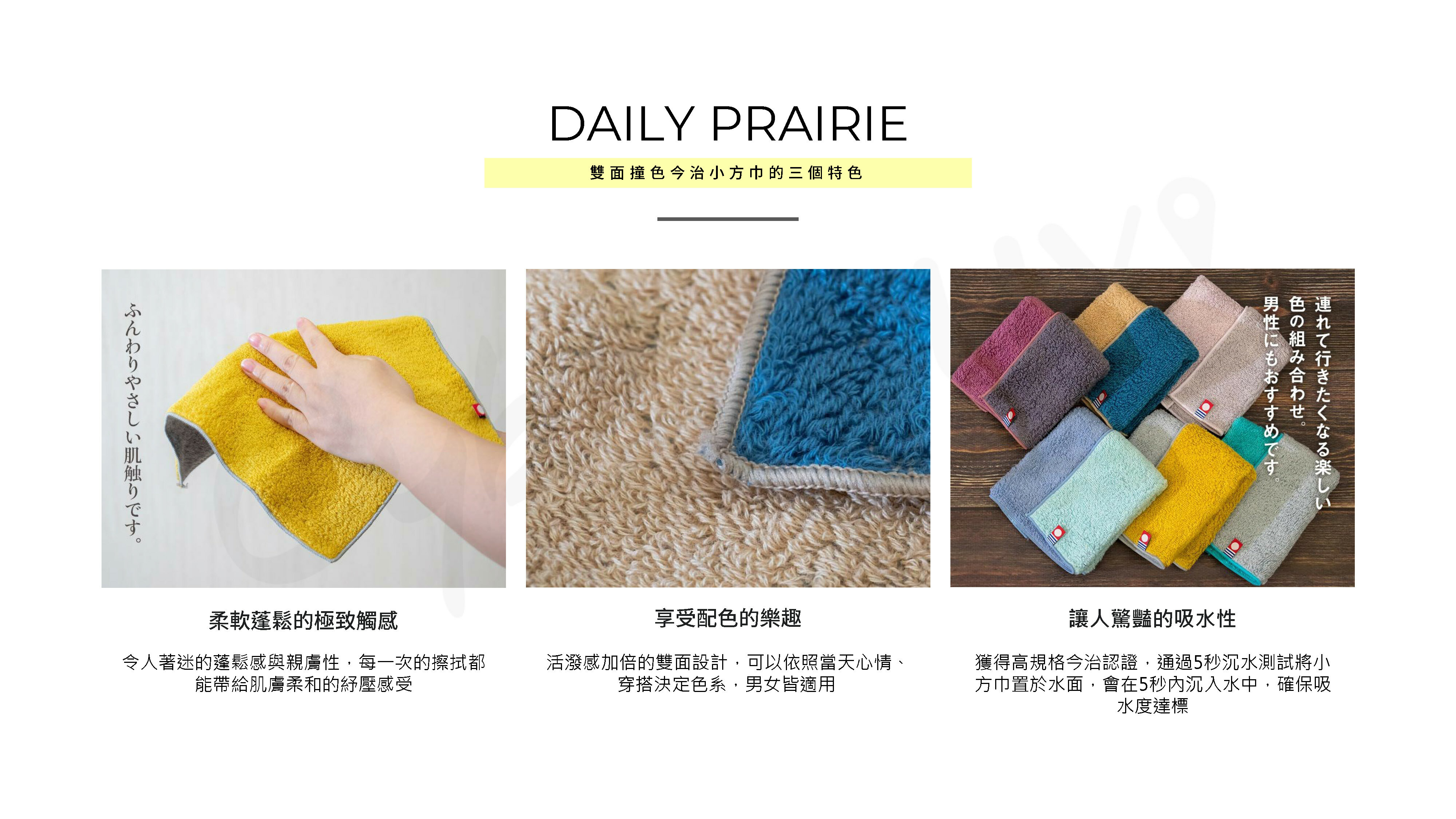 ●推出小方巾、毛巾、浴巾三種尺寸選擇