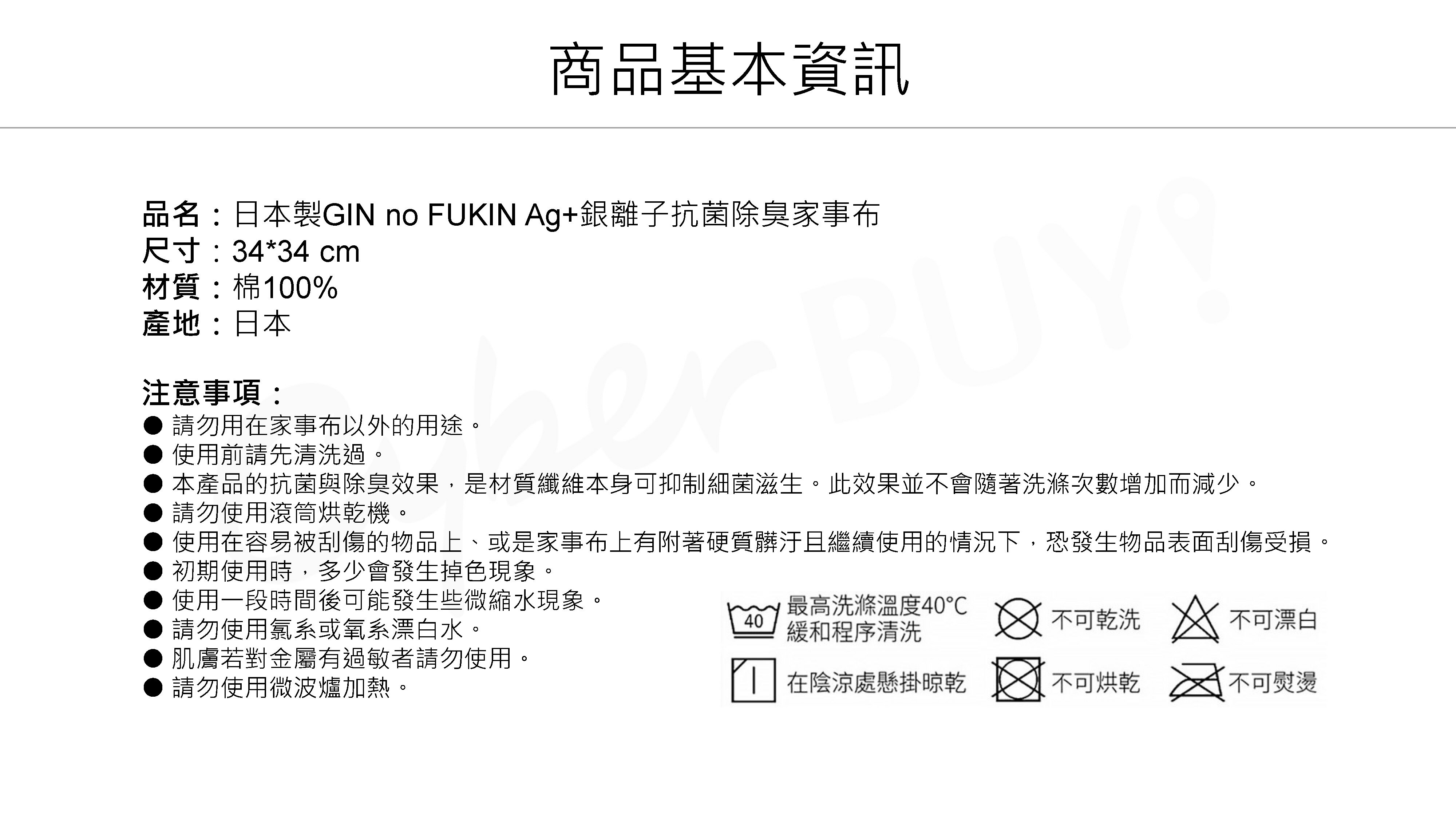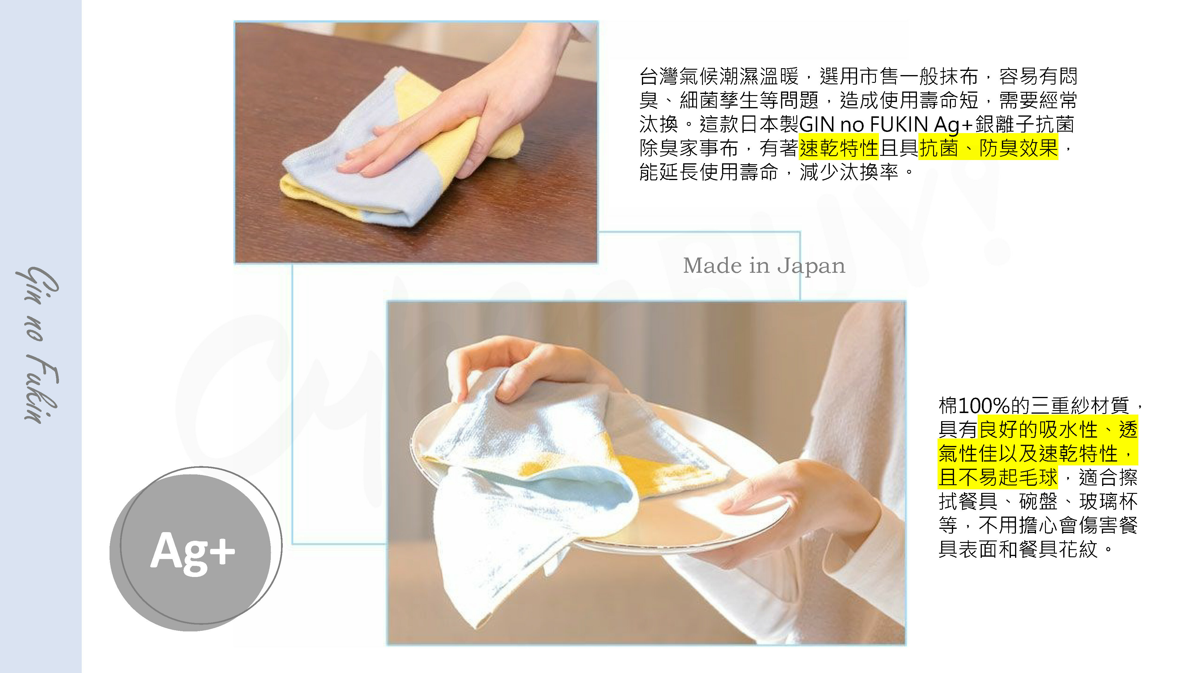 日本製GIN no FUKIN Ag+銀離子抗菌除臭家事布-黃藍