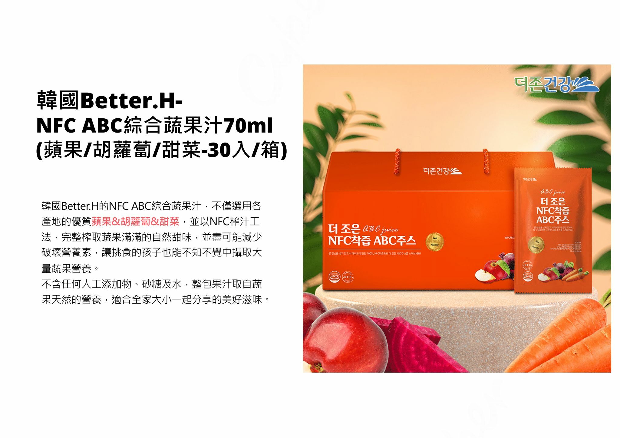 韓國Better.H-NFC ABC綜合蔬果汁70ml(蘋果/胡蘿蔔/甜菜)