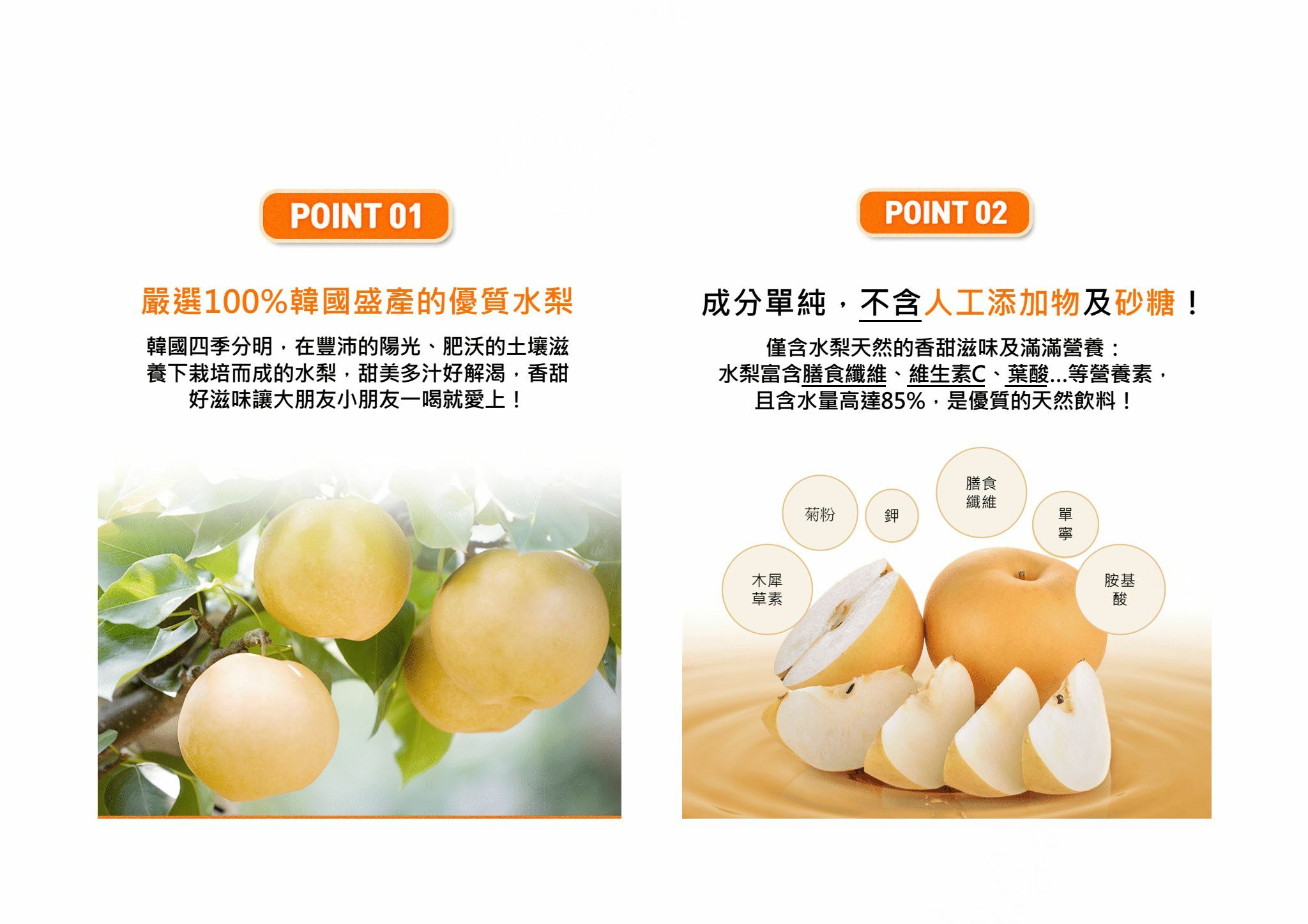 ●選用100%韓國產水梨製成,不含人工添加物及砂糖