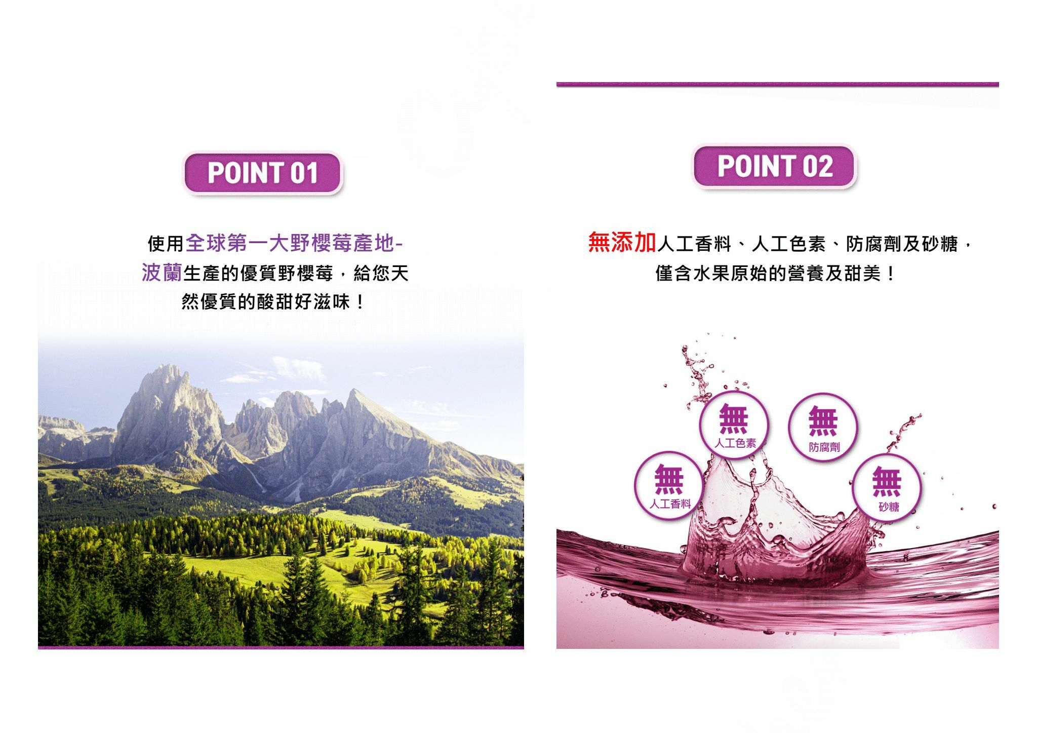 ●選用莓果之王-野櫻莓,無添加人工添加物及砂糖