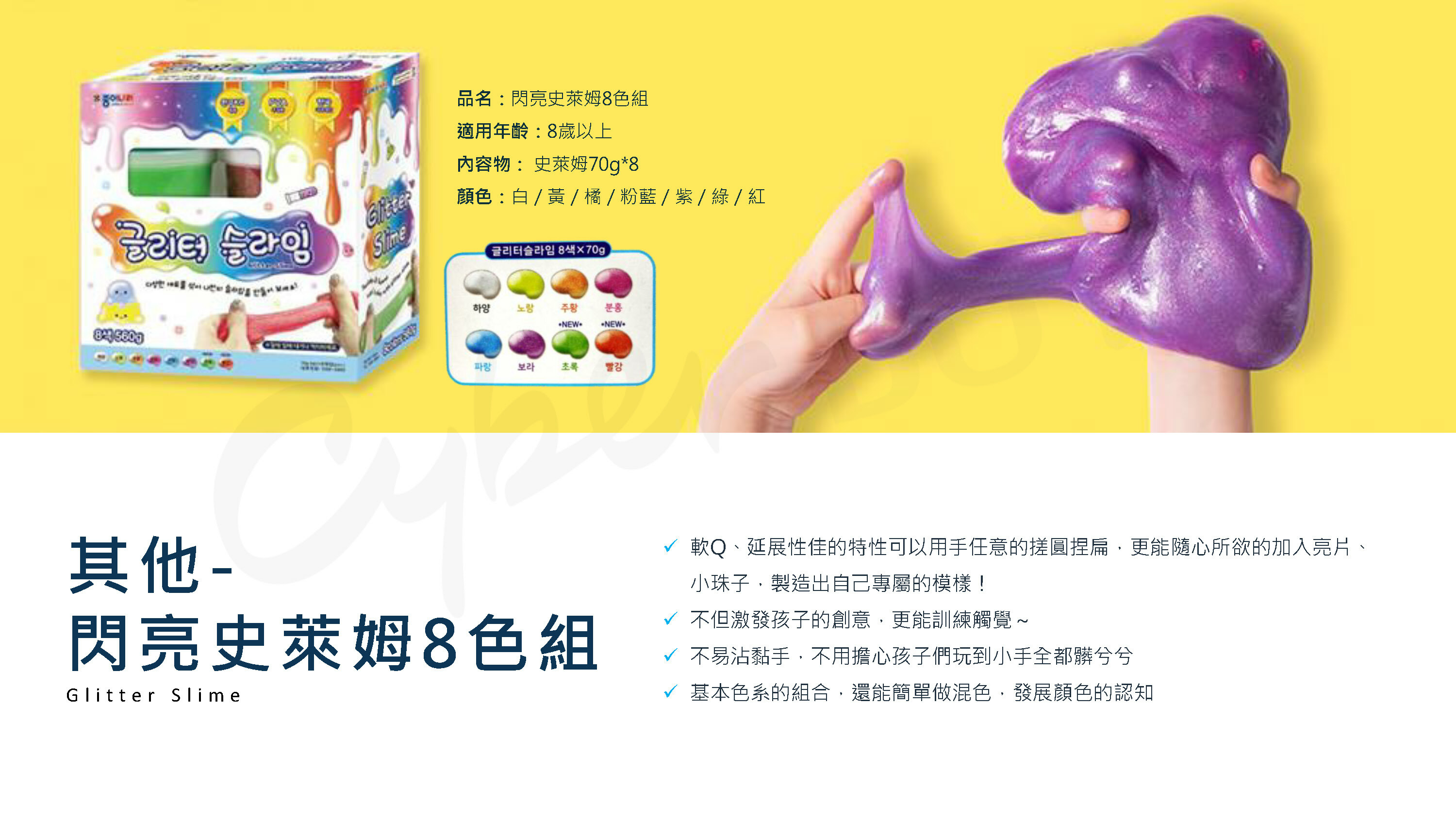 ●軟Q、延展性佳的史萊姆,可以用手任意的搓圓捏扁