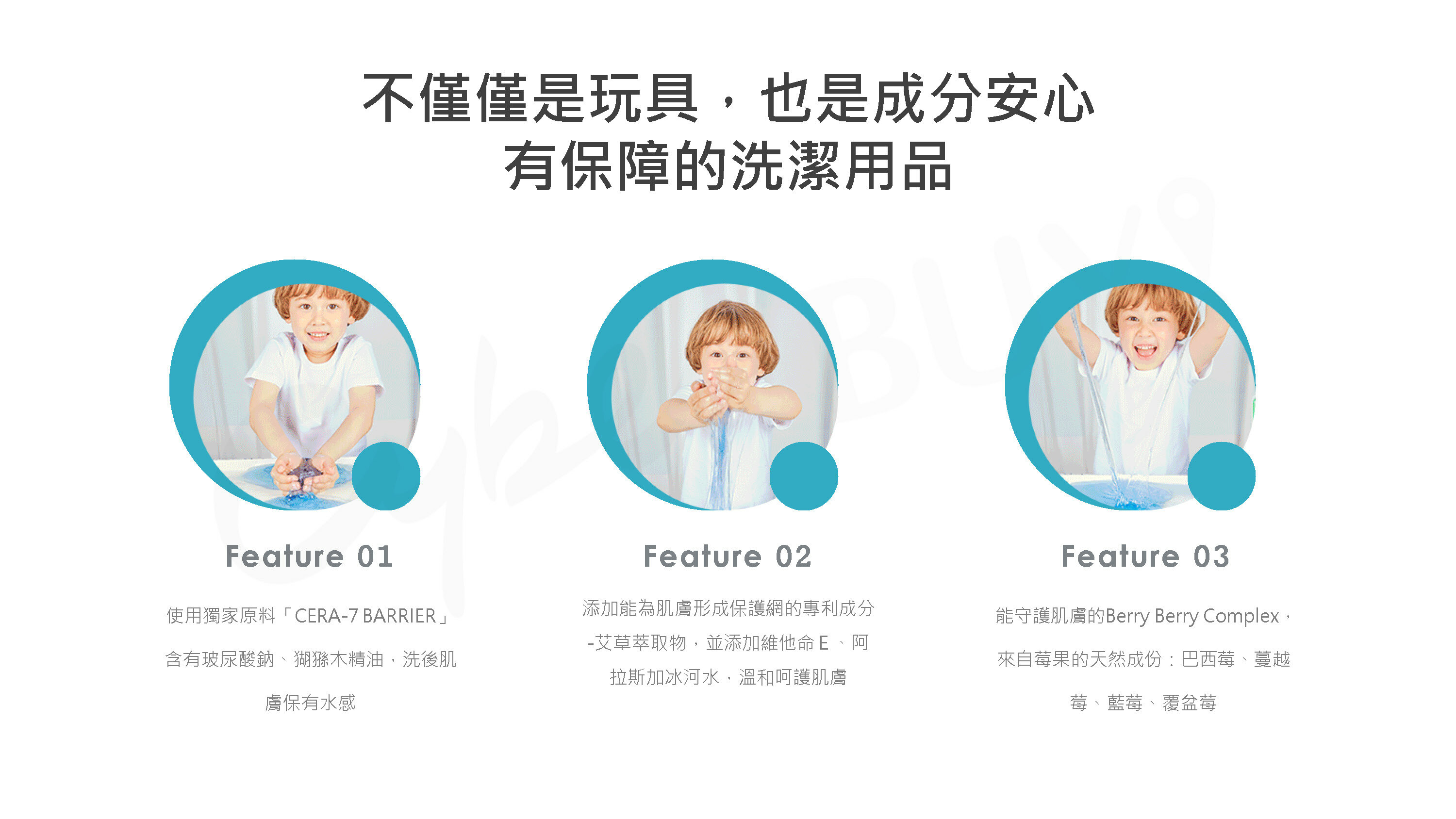 選用天然原料製作,讓孩子們能夠安全且盡情享受歡樂的沐浴時光。