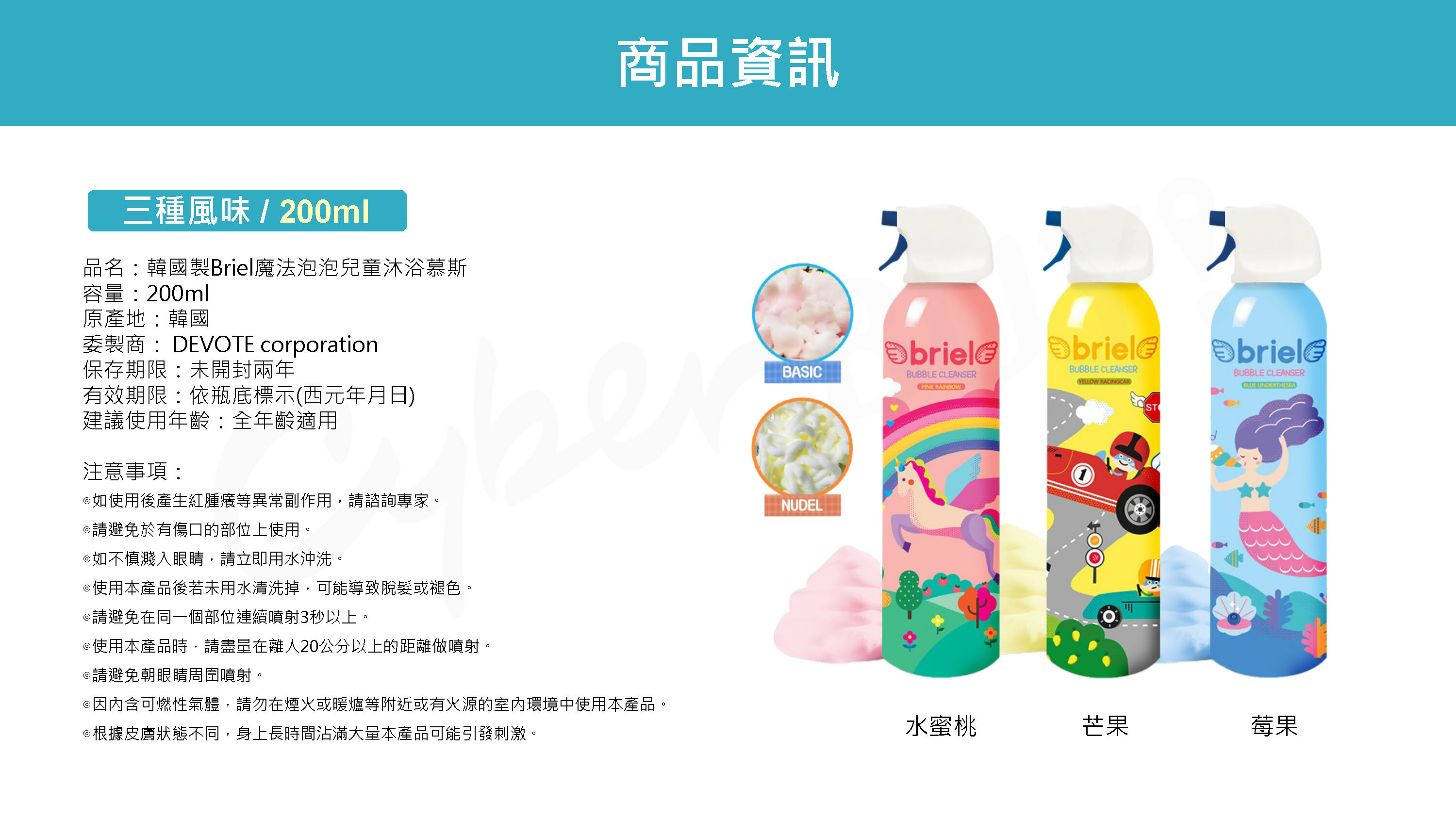 ●無添加人工色素,只要一瓶就可從頭洗到腳!