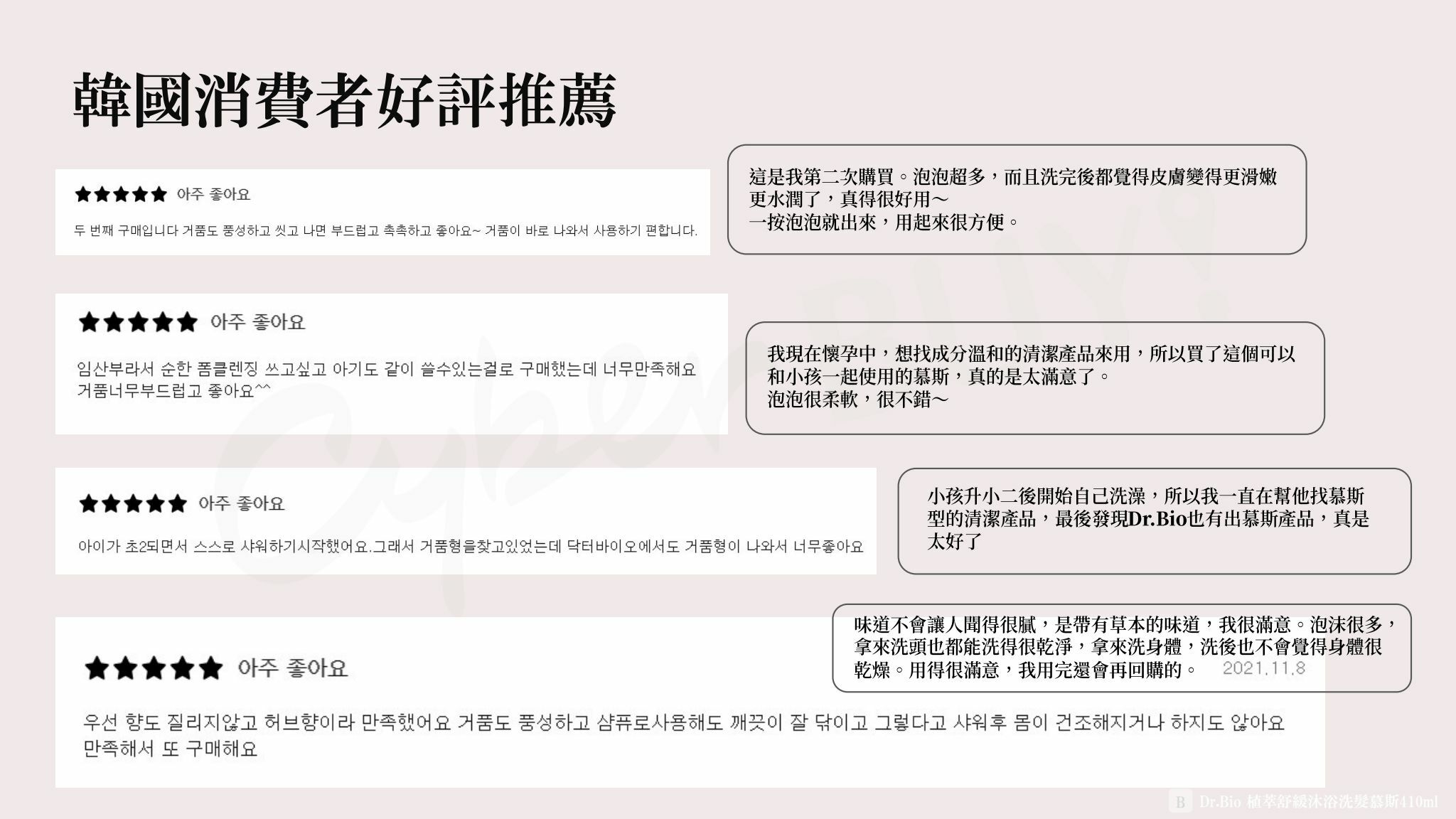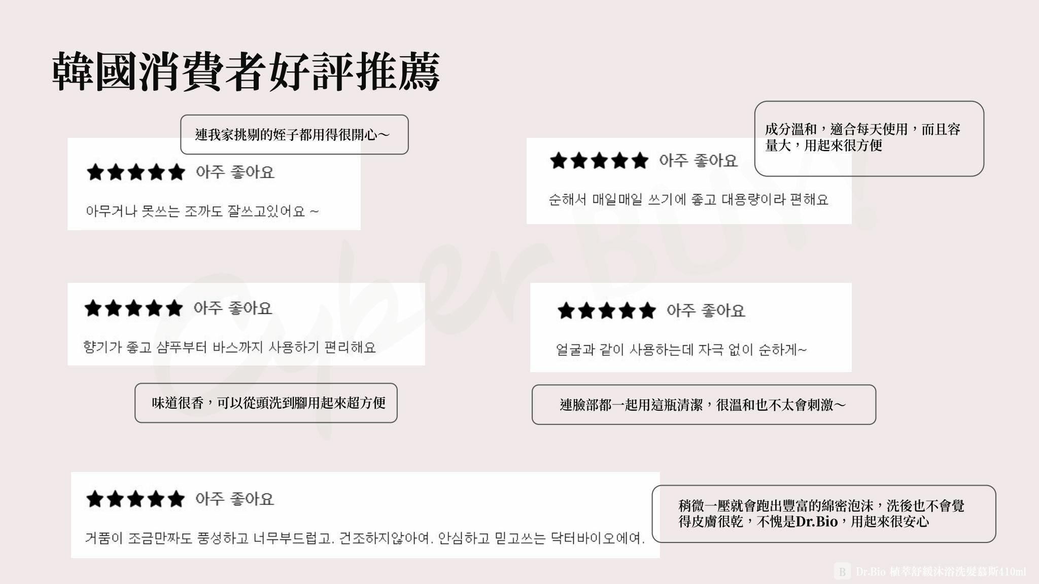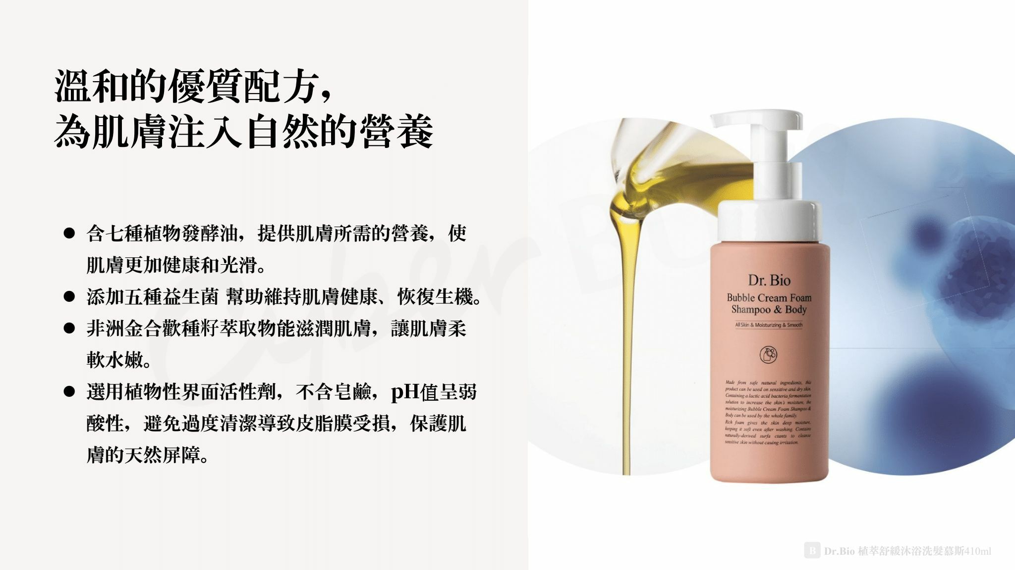 韓國製Dr.Bio 植萃舒緩保濕沐浴洗髮慕斯410mL