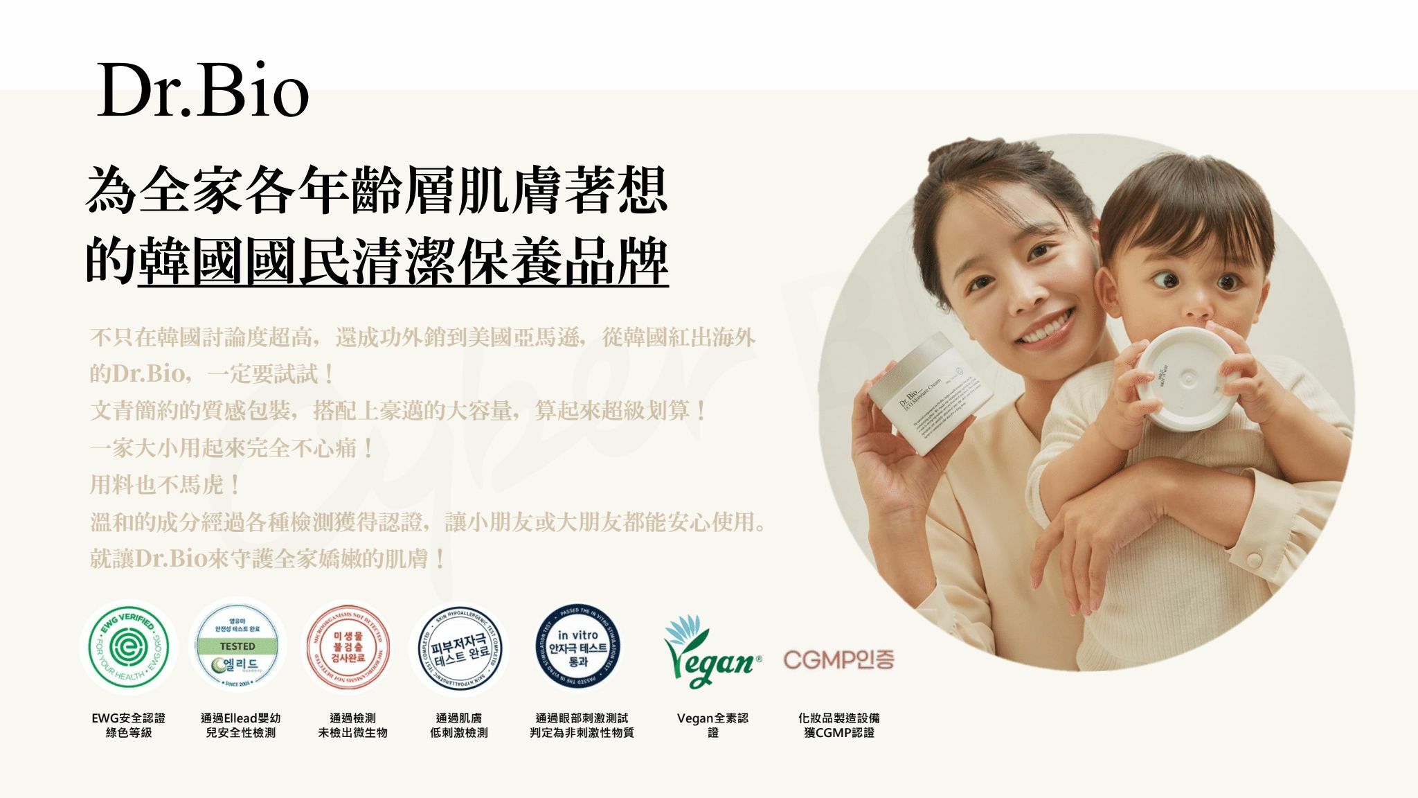 ●Dr. Bio是為全家各年齡層肌膚著想的韓國國民清潔保養品牌