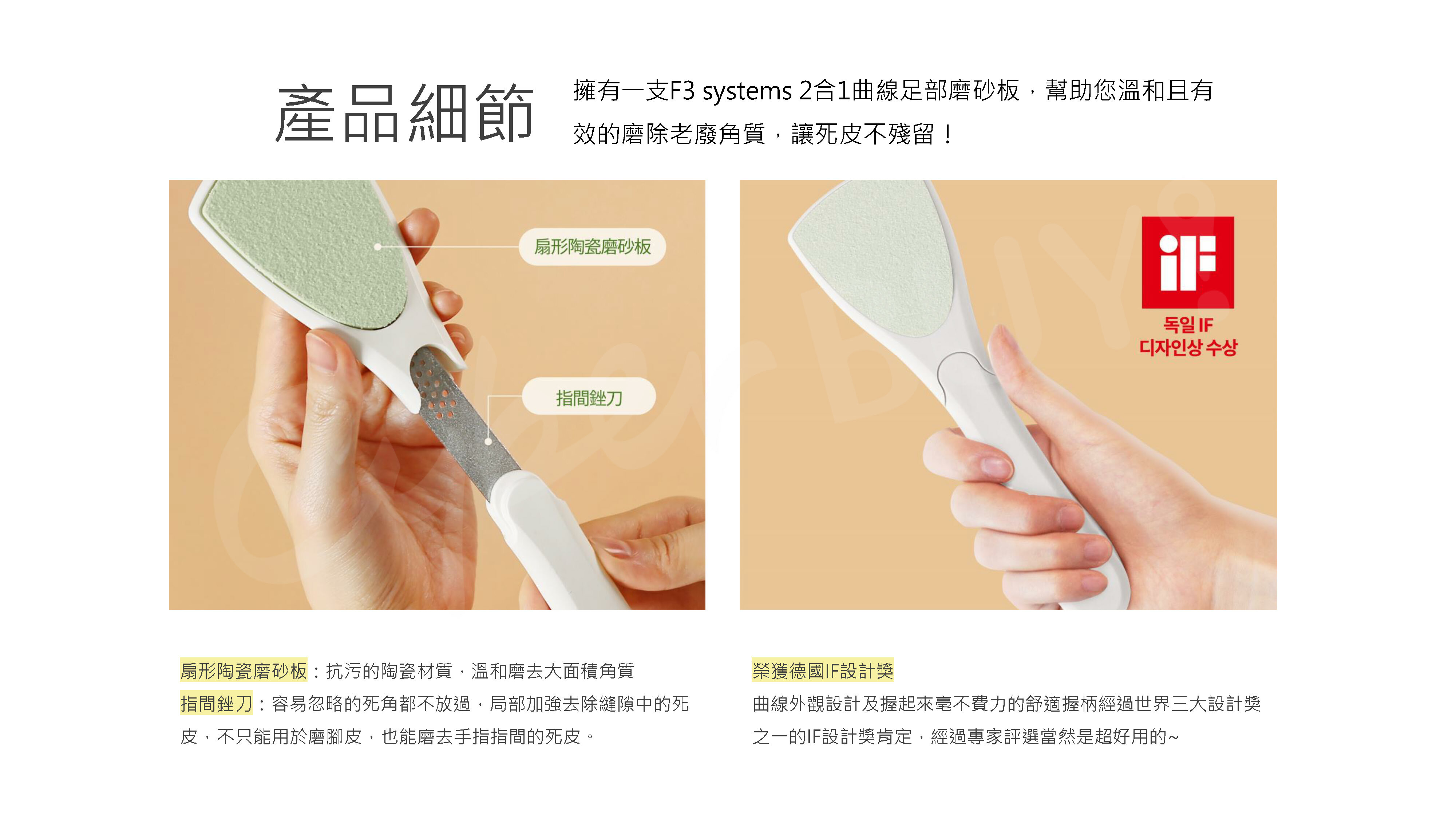 ●2合1曲線足部磨砂板-2款工具,一次搞定腳底板及指縫角質