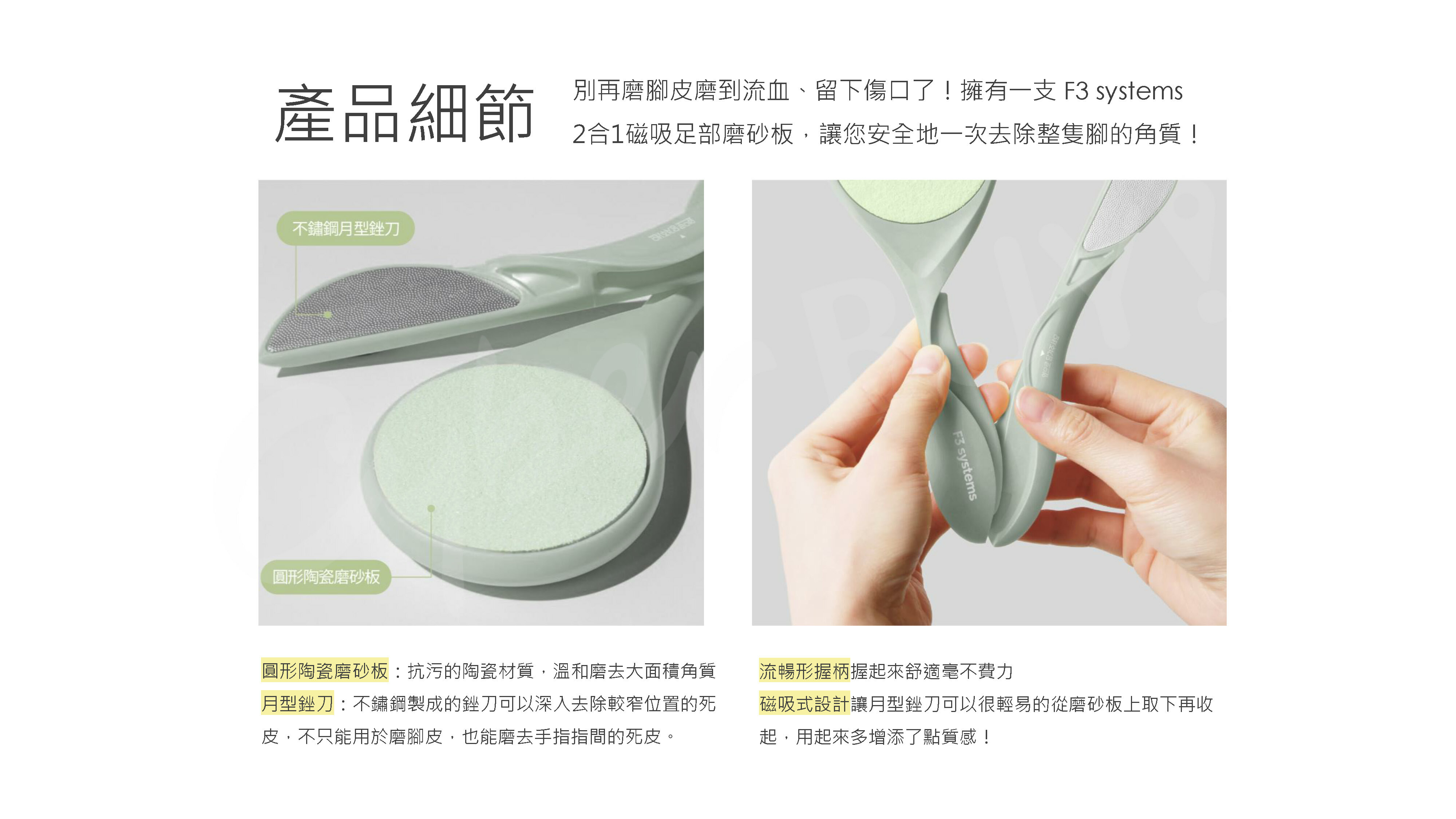 ●2合1磁吸足部磨砂板-2款工具,一次搞定腳底板及指縫角質